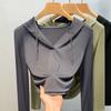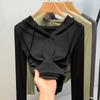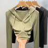 Женская осенне-зимняя толстовка с капюшоном, длинными рукавами, тонким дном и складками на талии
