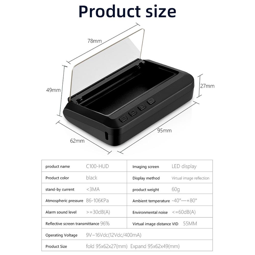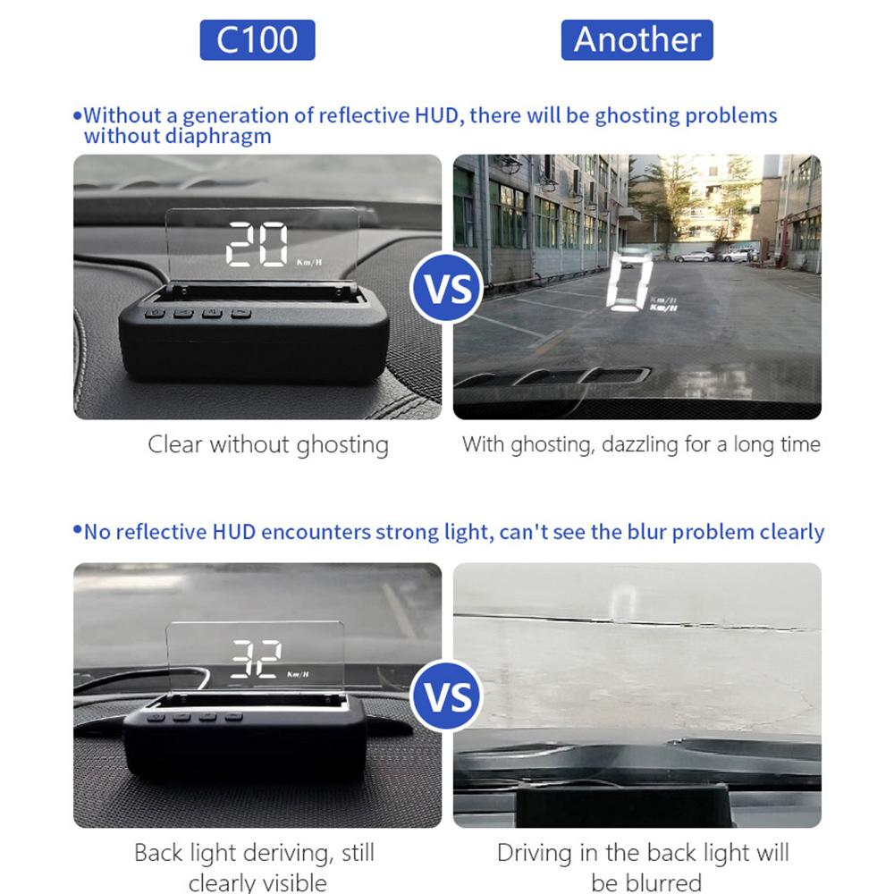C100 автомобильный HUD проекционный дисплей на лобовое стекло, проектор напряжения, сигнализация OBD2 II EUOBD с противоскользящей накладкой, система предупреждения о превышении скорости