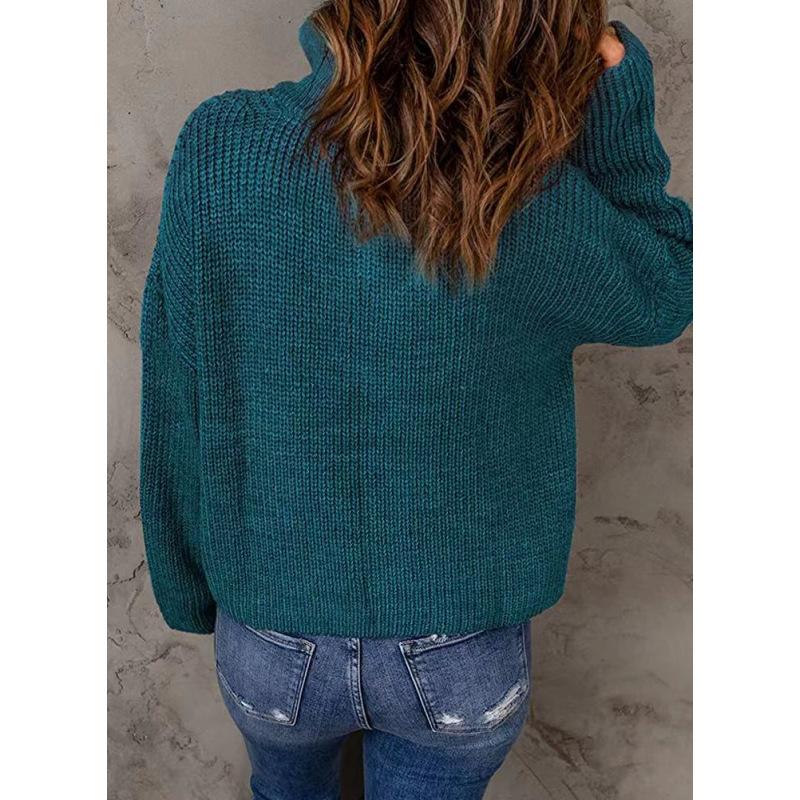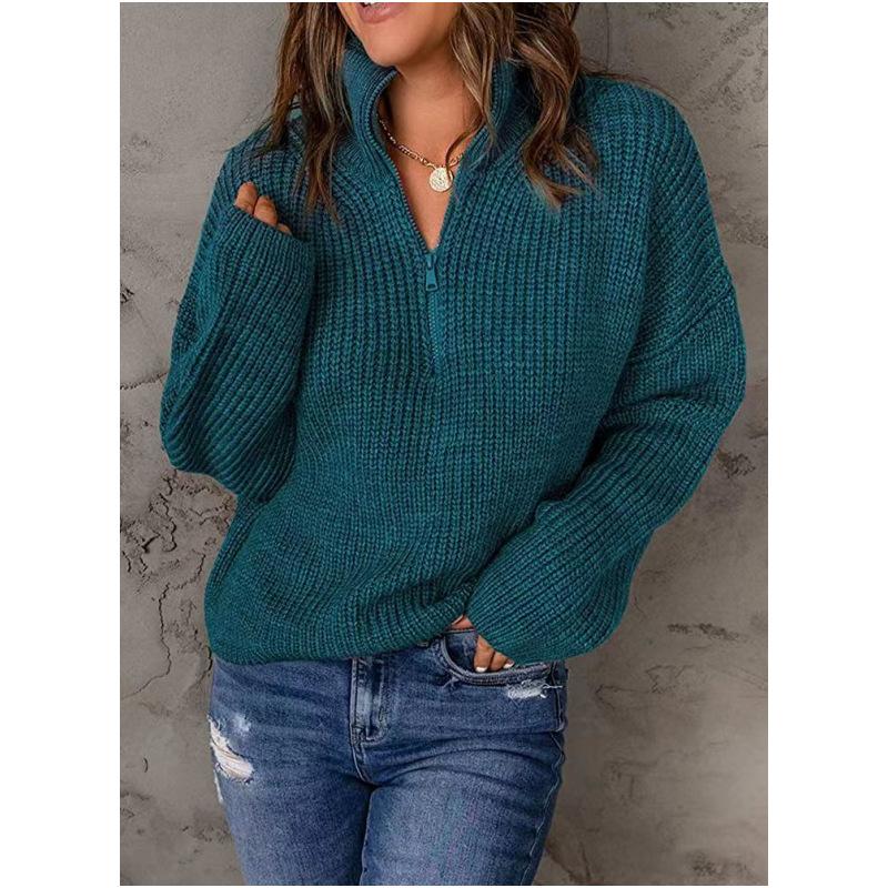 Осенне-зимний женский свитер с полуоткрытым вырезом, однотонный пуловер на молнии, модный свитер