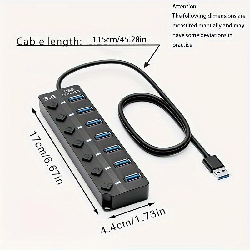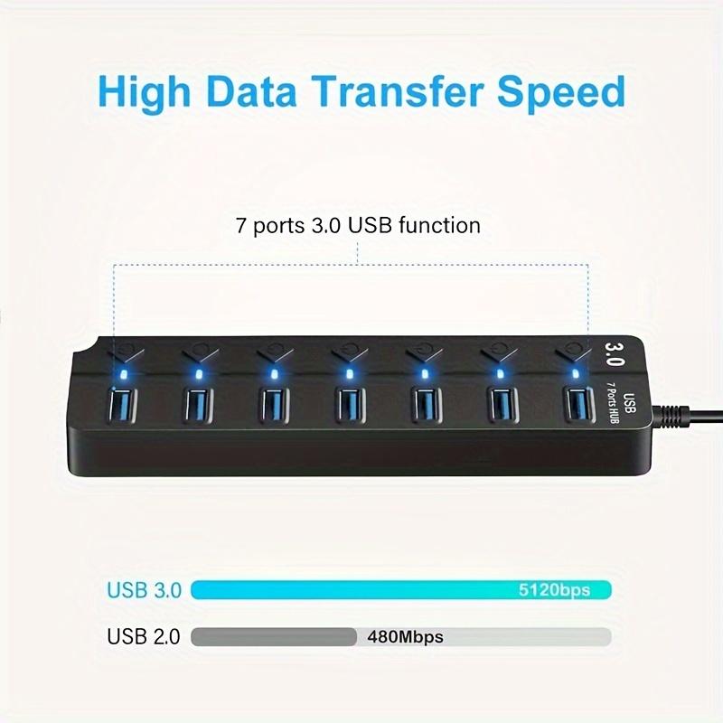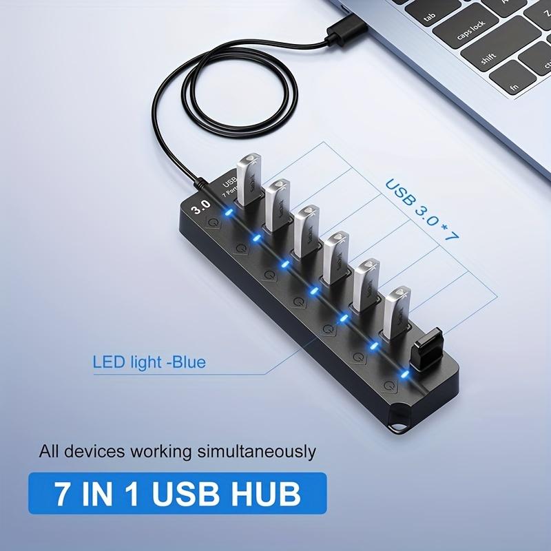 Концентратор USB 3.0 на 7 портов с независимым переключателем и индикатором питания — совместим с MacBook, ноутбуком, Surface Pro, PS4, ПК, внешним жестким диском