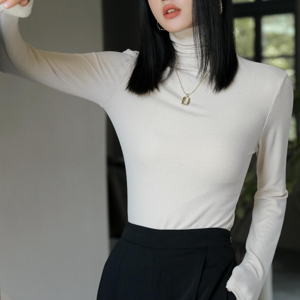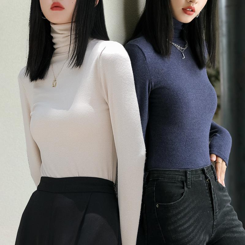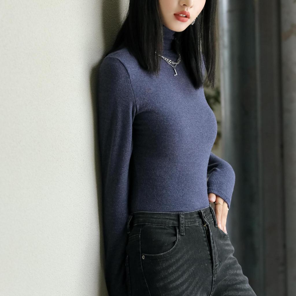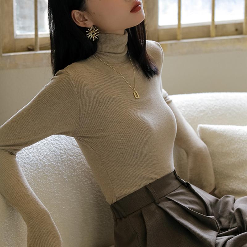 Весенне-осенняя женская блузка с высоким воротником, нижняя рубашка, женский тонкий модный свитер с внутренней стороны, трикотаж, топы с длинными рукавами