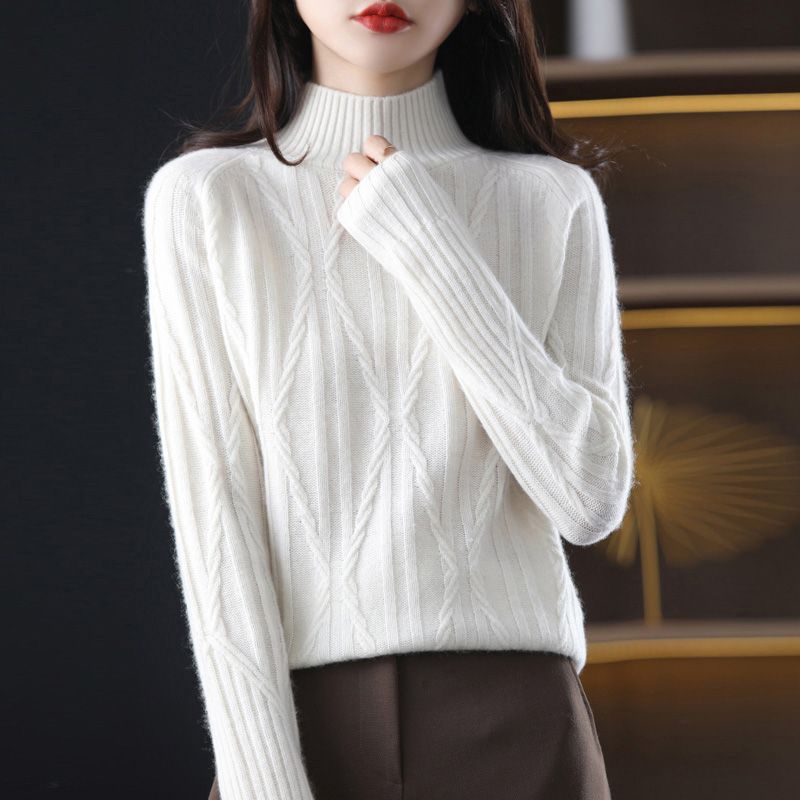 Однотонный женский свитер с воротником-стойкой - повседневный свитер с длинным рукавом на осень и зиму