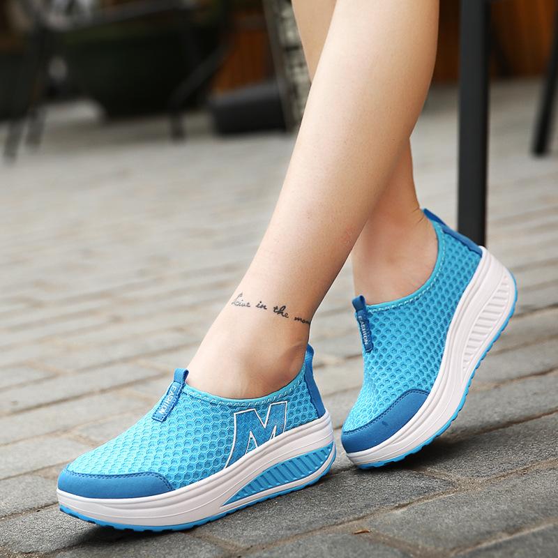 Весенние и летние туфли-качалки Женская обувь Повседневная спортивная обувь Туфли-маффины Туфли на танкетке Туфли в сеточку