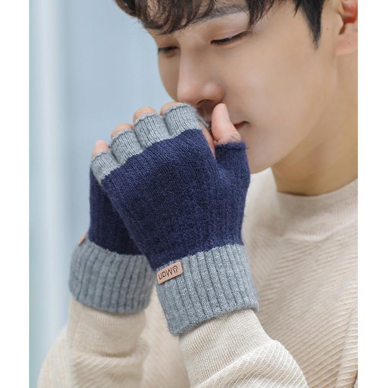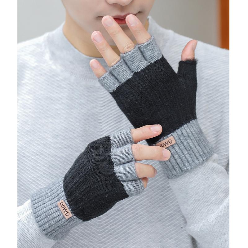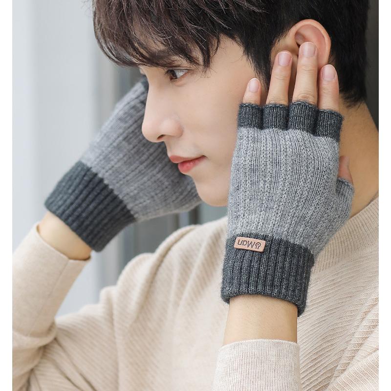 Мужские зимние перчатки без пальцев с полупальцами, вязаные офисные теплые перчатки с открытыми пальцами, толстые эластичные перчатки для вождения