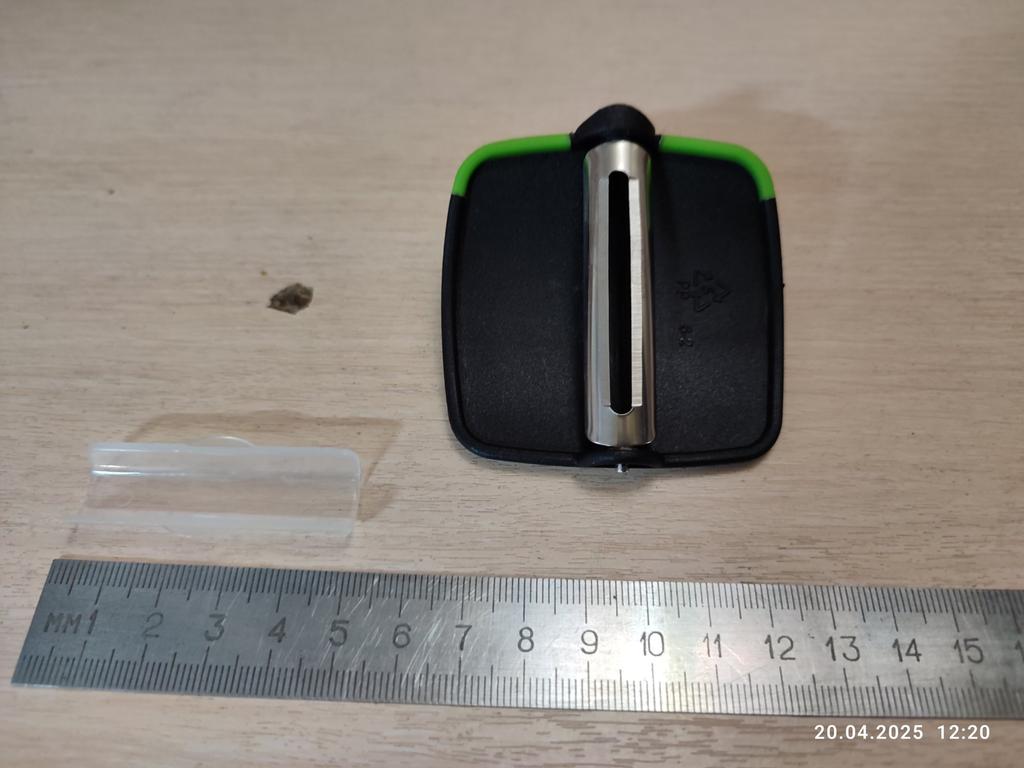 До Новосибирска заказ дел 25 дней всё целое материал пластмасса. Крепление для пальцев резиновые и не сильно жёсткие. Как по мне диаметр крепления под пальцы малые. Постоянно выскакивает. Не удобно пользоваться. Нож двухсторонний, острый, чистит хорошо. Кожуру снимает тонким слоем. Может для женщин будет идеальный вариант Брать или нет решать вам.