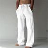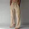 2023 Новые мужские повседневные брюки из хлопка и льна с перекрестными бретелями — эластичный пояс, завязка на шнурок, однотонные, тонкие, свободный крой.