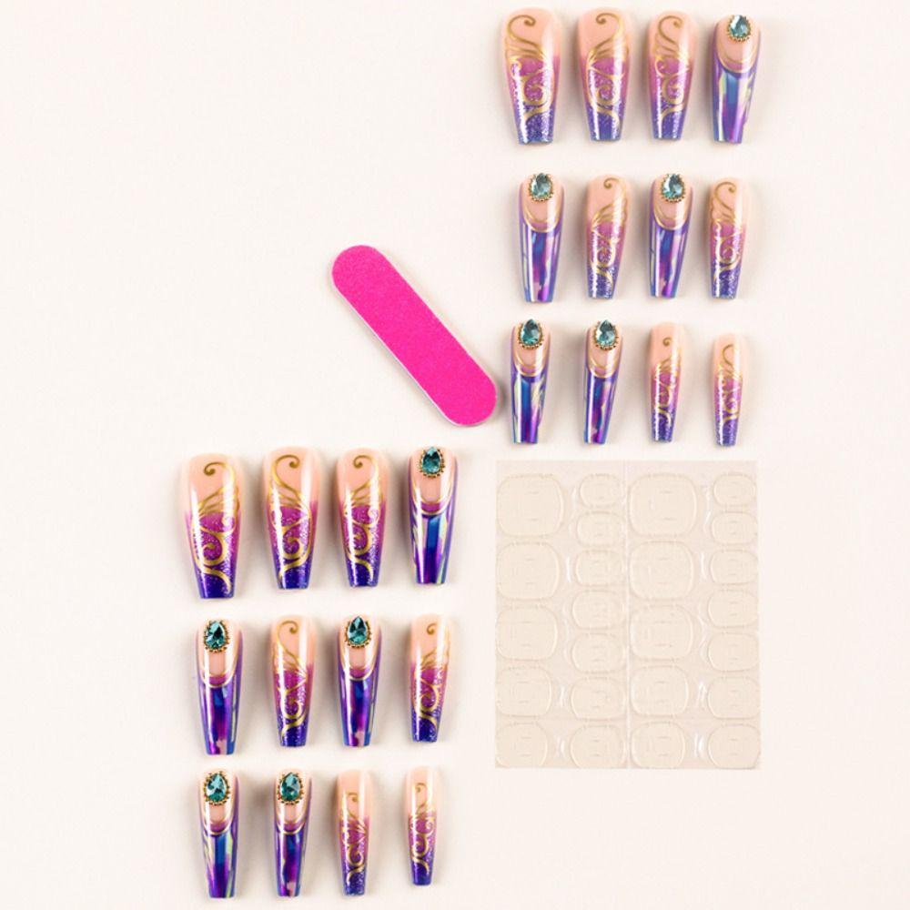 Фиолетовые бабочки накладные ногти длинные балерины ногти типсы новый пресс на ногтях женщины девушки