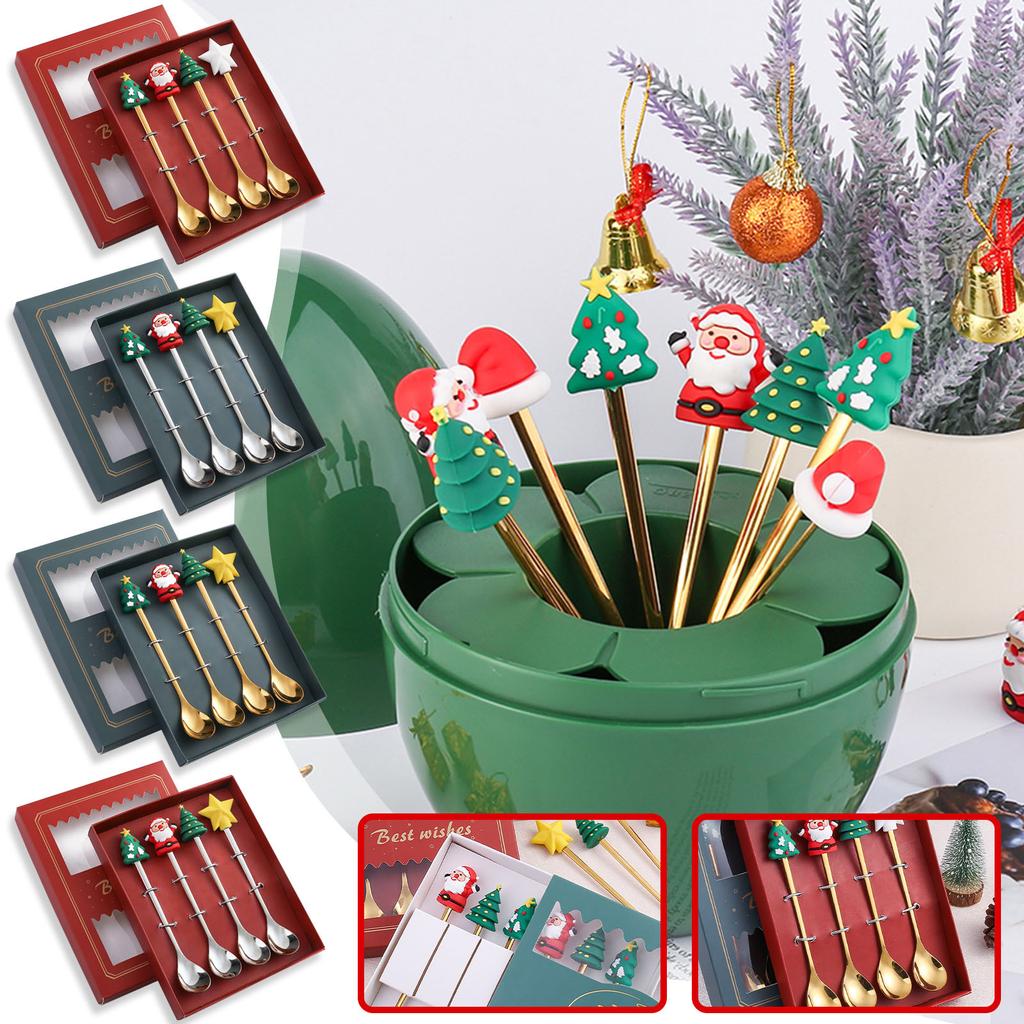 Рождественская ложка из нержавеющей стали, кофейная ложка, мороженое, суп, сахар, десертные чайные ложки, вилка, кухонная посуда