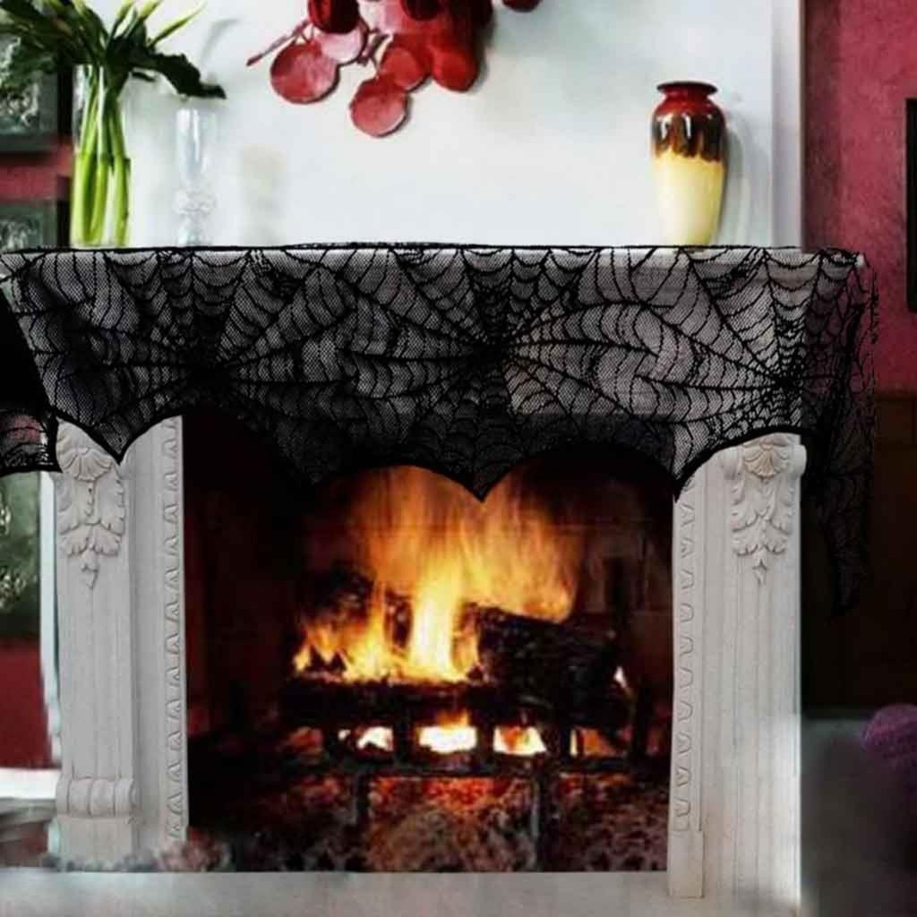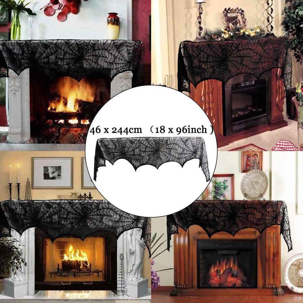 Ткань для камина на Хэллоуин, полотенце для камина, веб-кружево, черное полотенце для камина, декоративная ткань