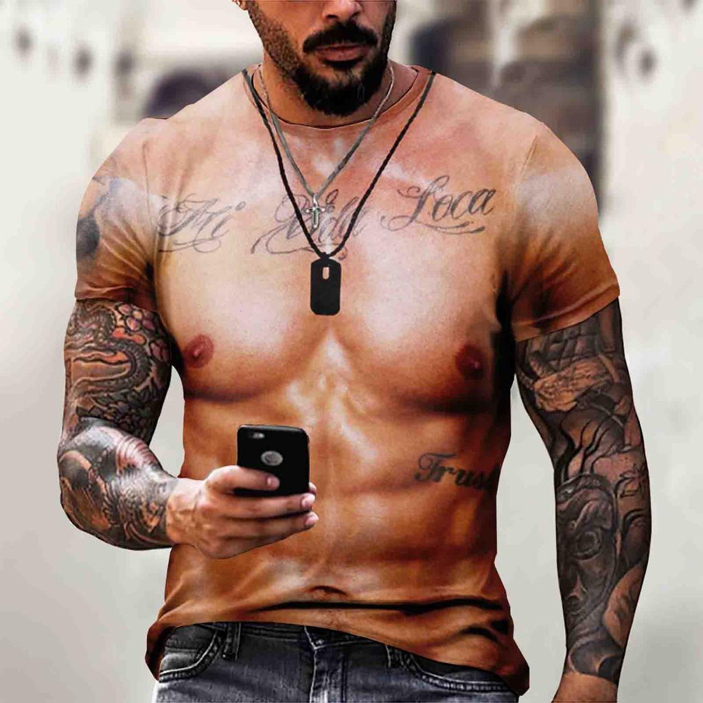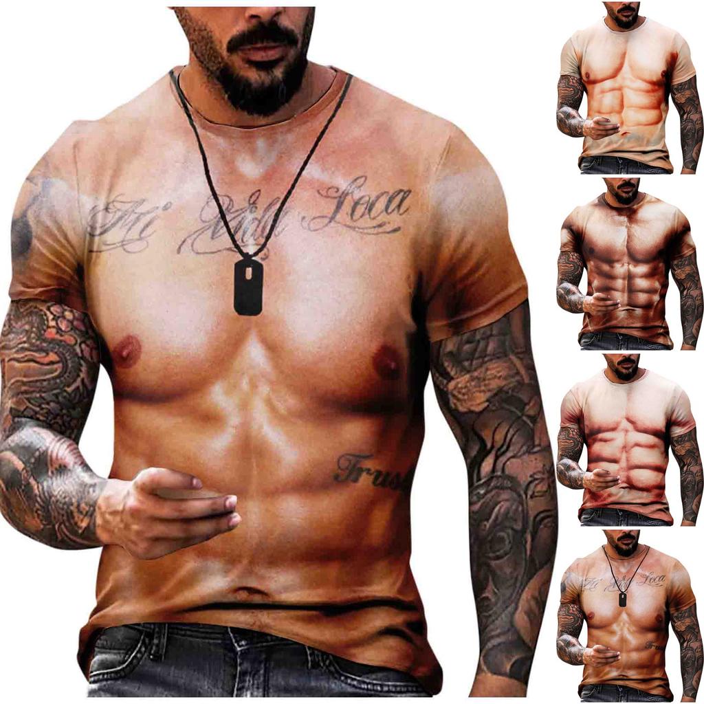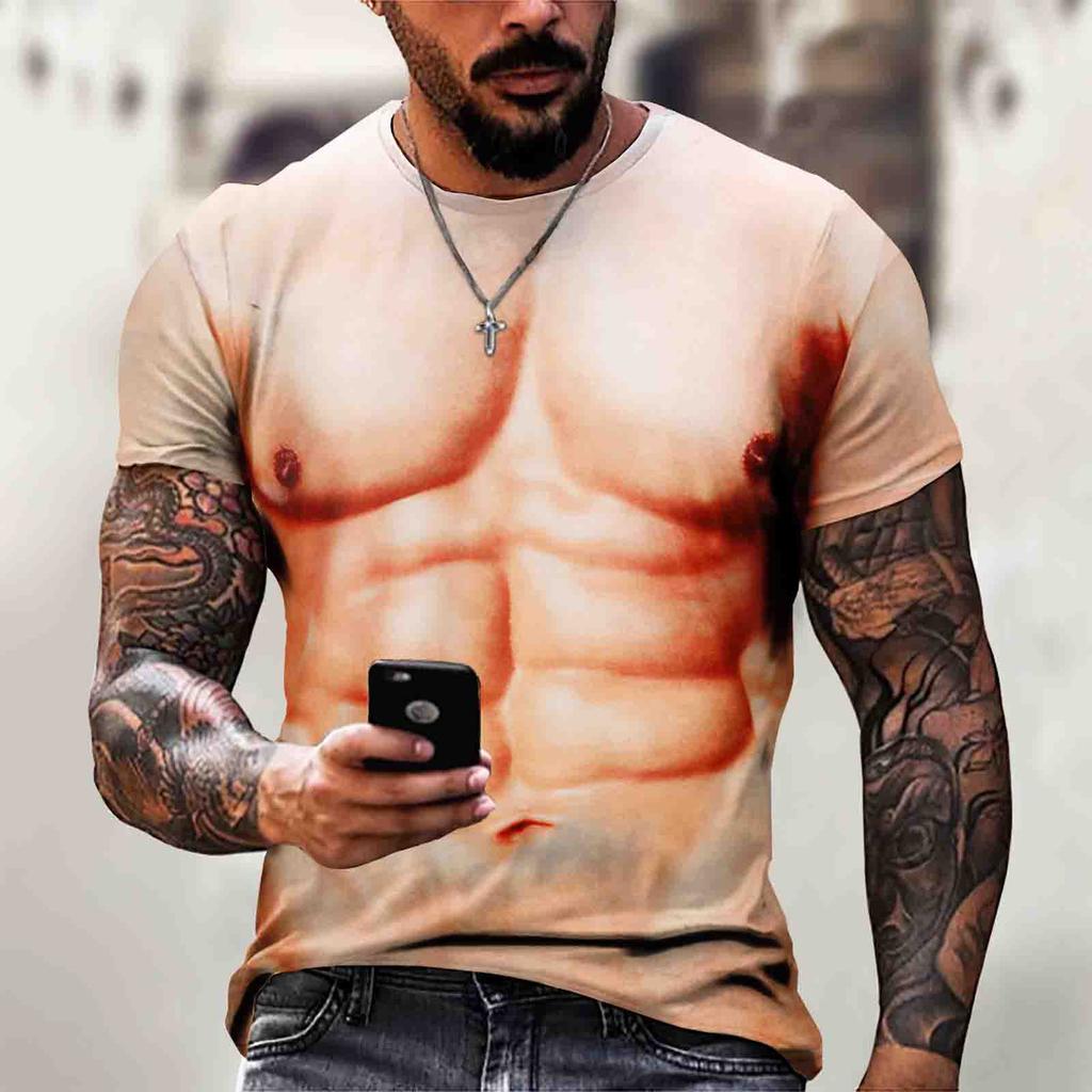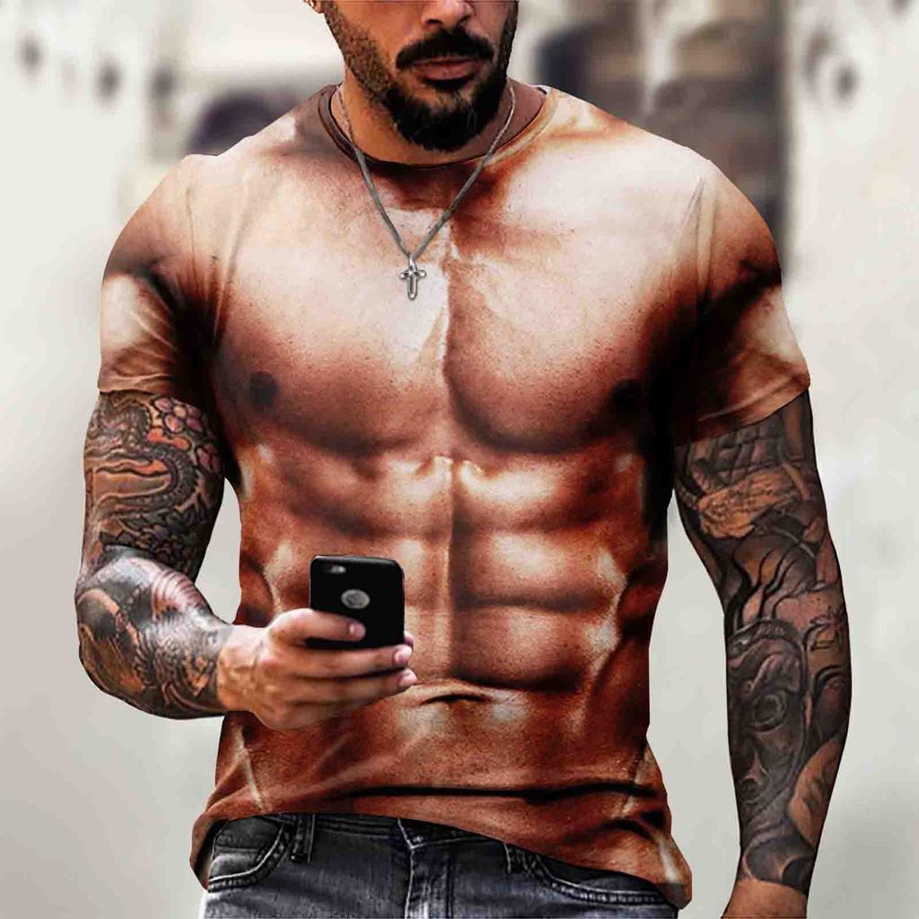 Мужская футболка с короткими рукавами и 3d мышцами, повседневный пуловер с мышцами живота, топ с короткими рукавами