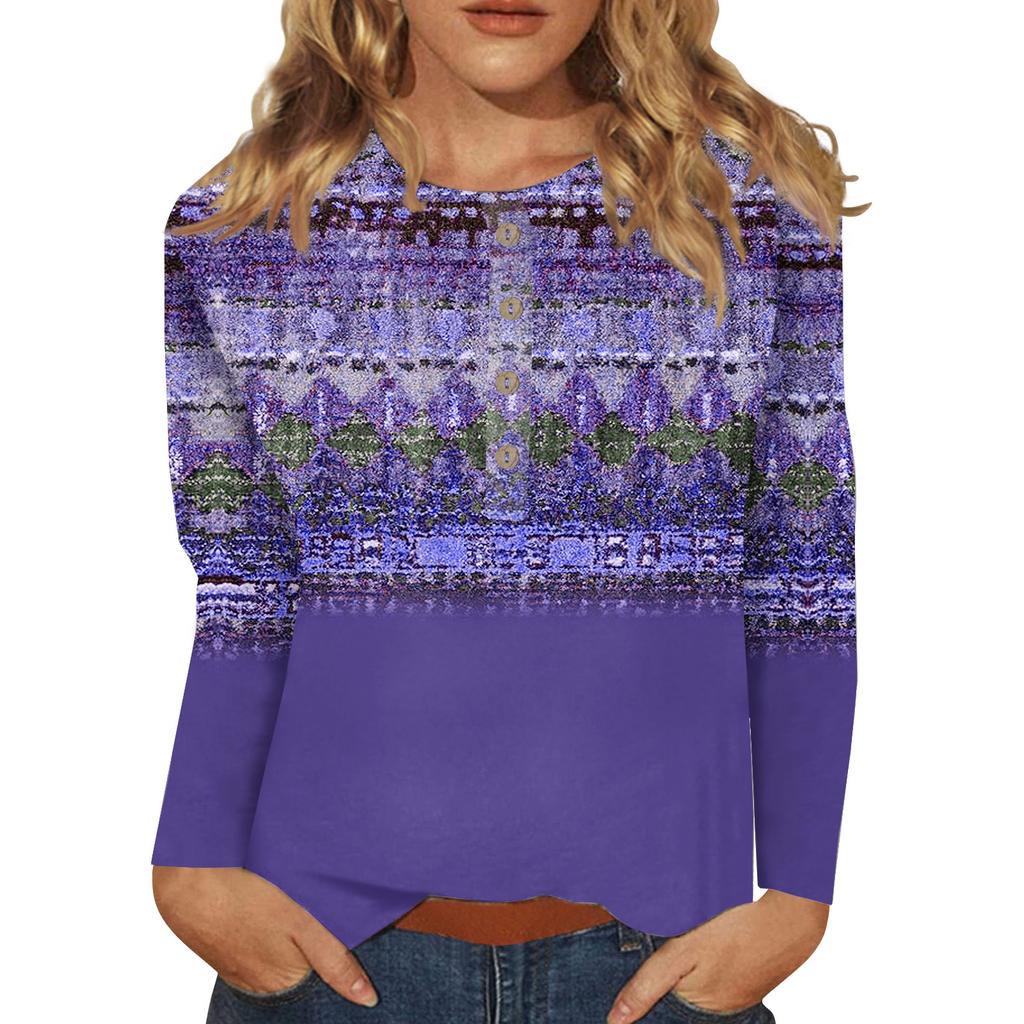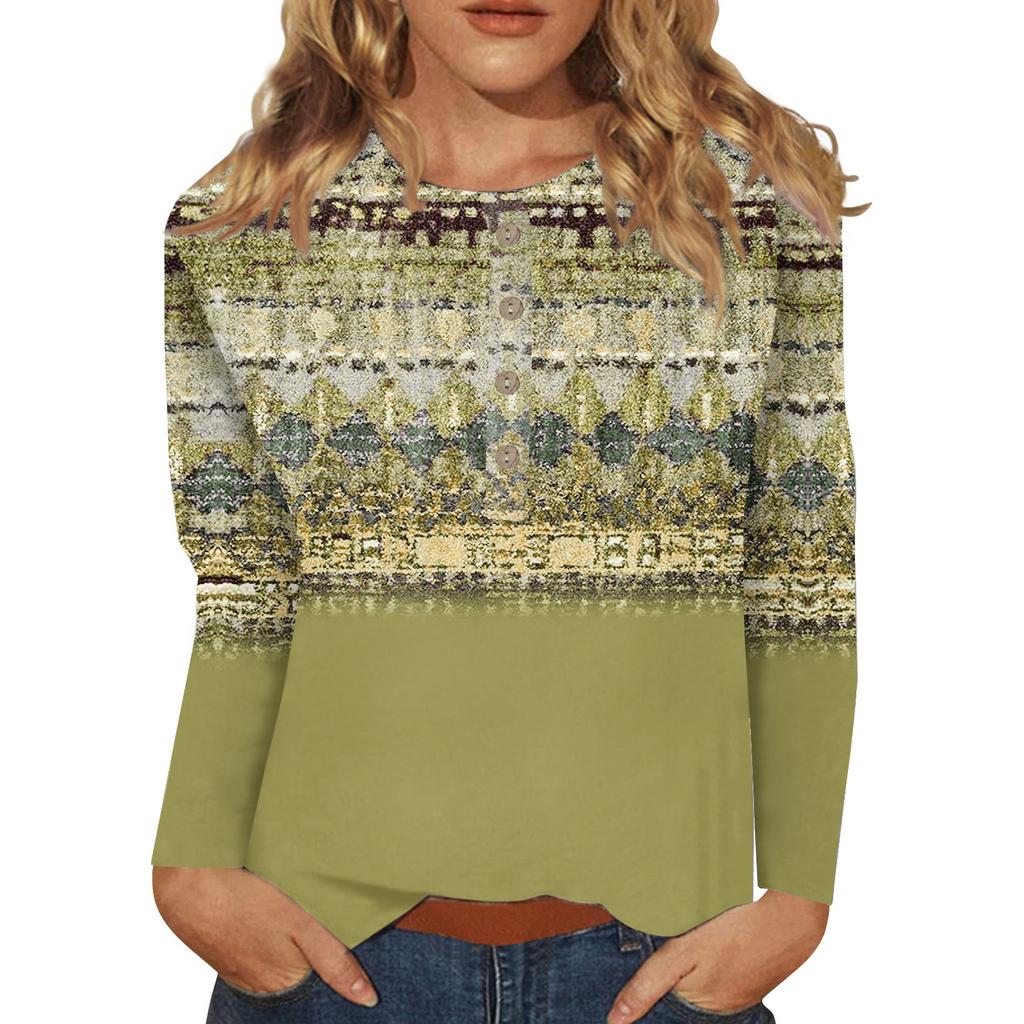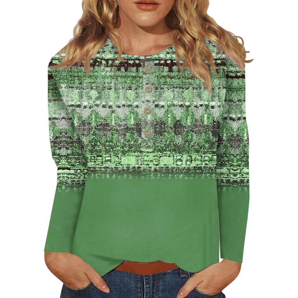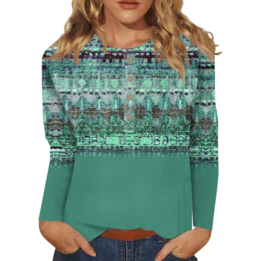 Женские топы с воротником на пуговицах Женские блузки Женские повседневные топы с длинным рукавом и V-образным вырезом Модные рубашки с принтом Топы Футболки Пуловеры Топы