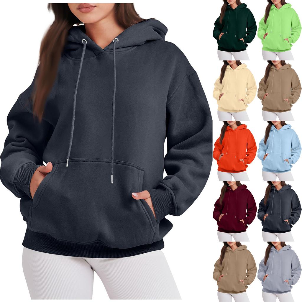 Женская модная повседневная однотонная толстовка с капюшоном и длинным рукавом с карманом — купить товар онлайн с бесплатной доставкой по всему миру!