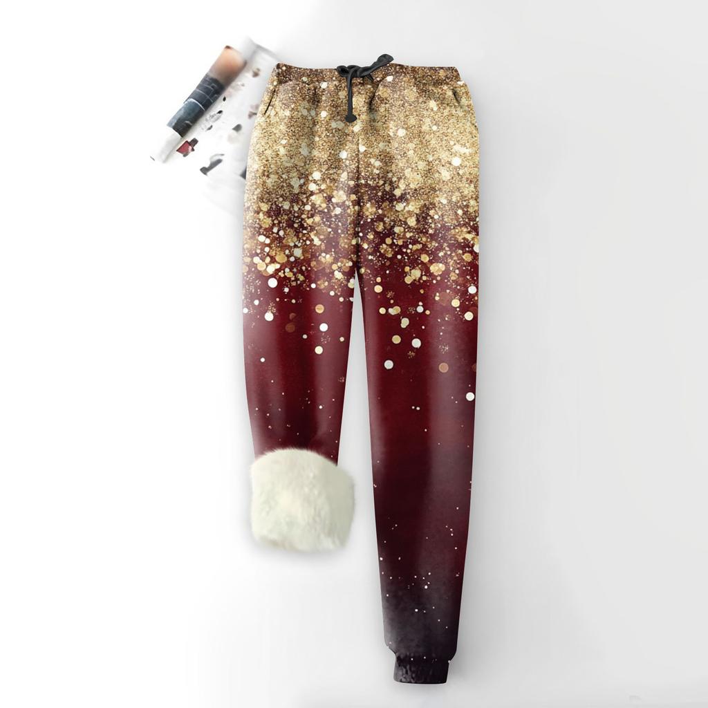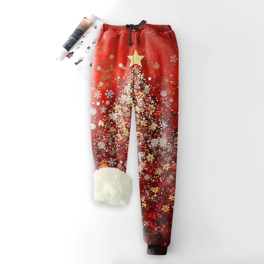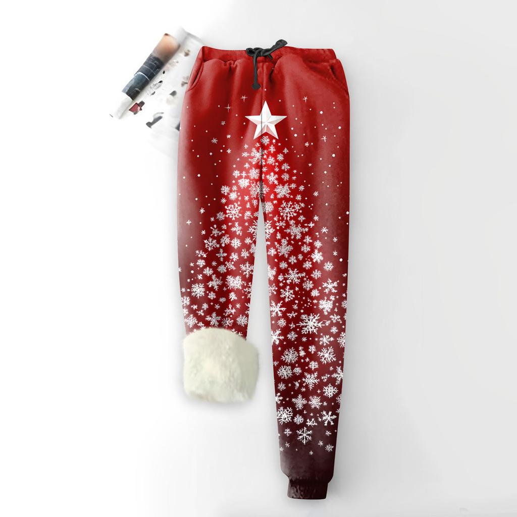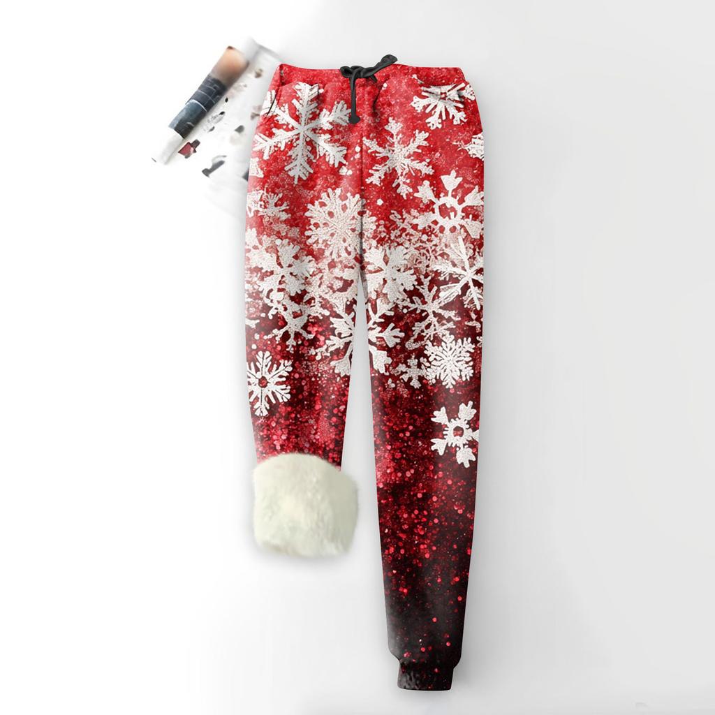 Женские модные рождественские спортивные свободные утолщенные теплые флисовые брюки с принтом