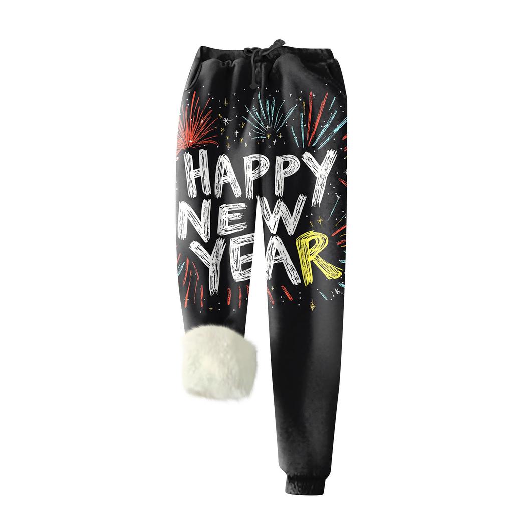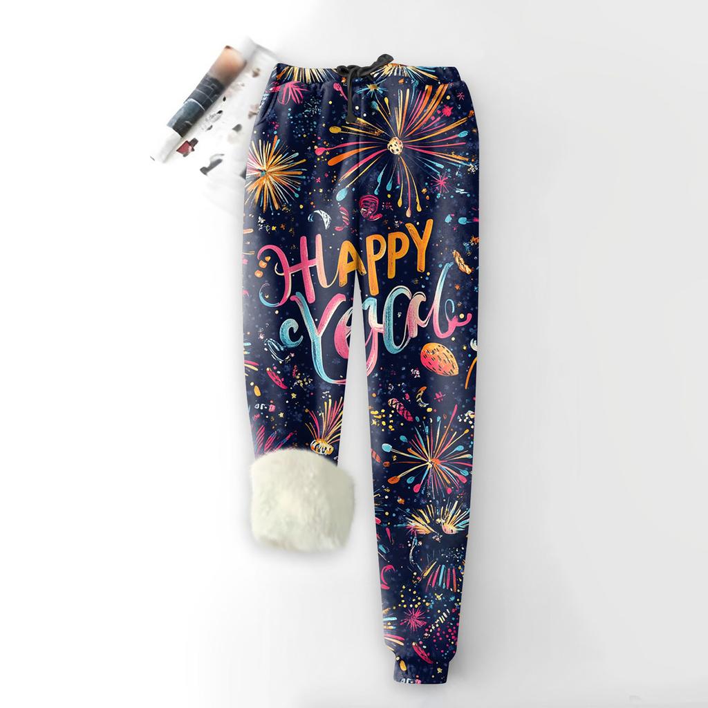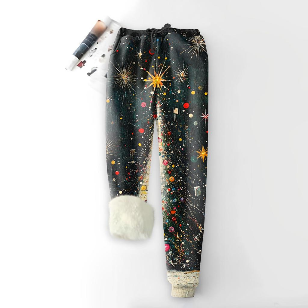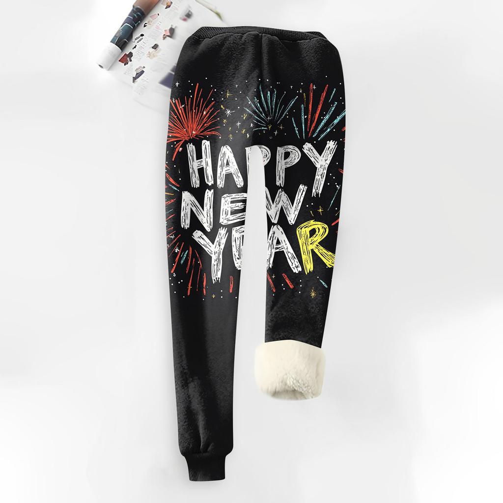 Женские модные рождественские спортивные свободные утолщенные теплые флисовые брюки с принтом