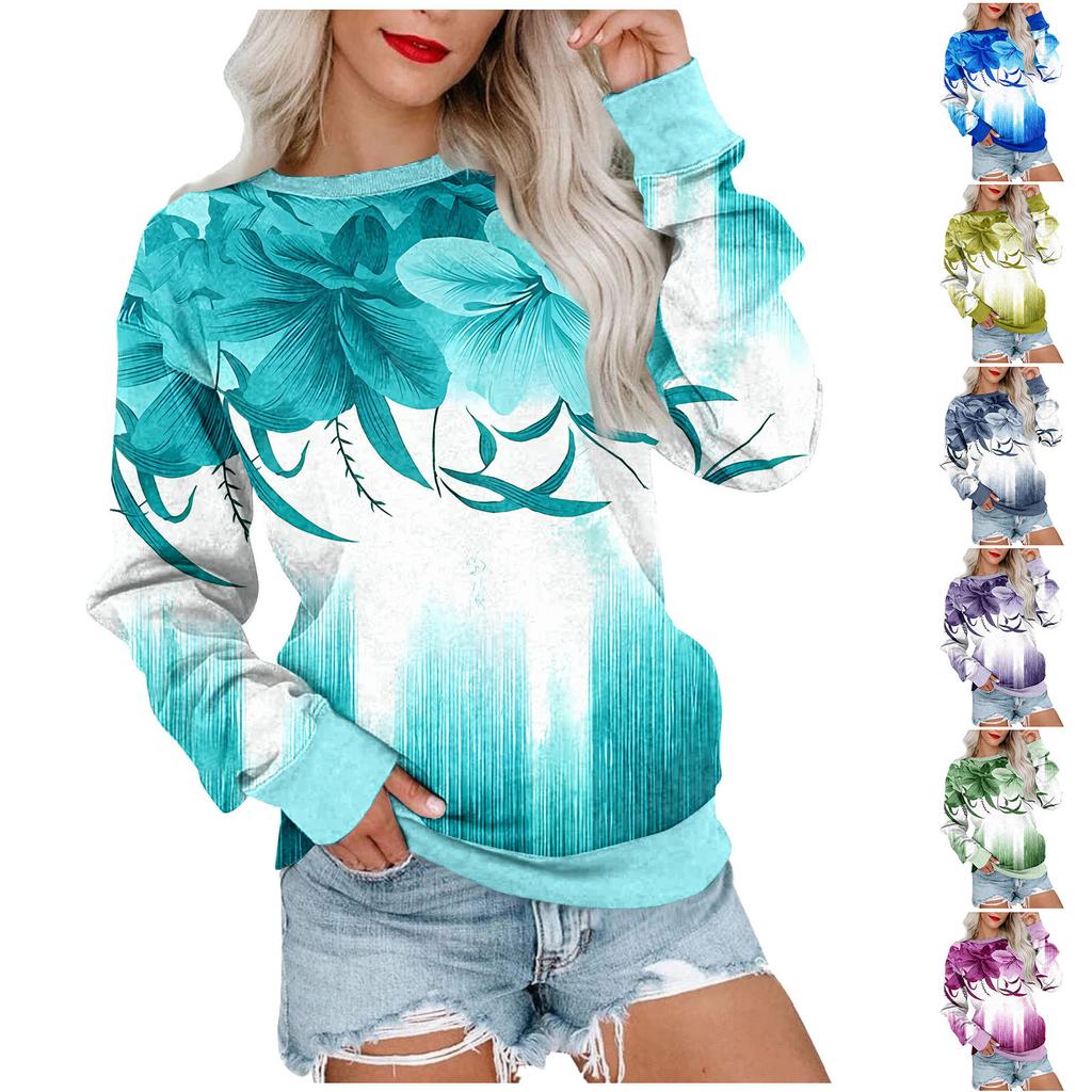 Женская толстовка с цветными блоками, повседневная удобная свободная легкая женская толстовка с длинным рукавом и круглым вырезом