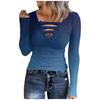 Женская футболка, модная, повседневная, с градиентным цветным принтом, V-образным вырезом, облегающая, с длинным рукавом