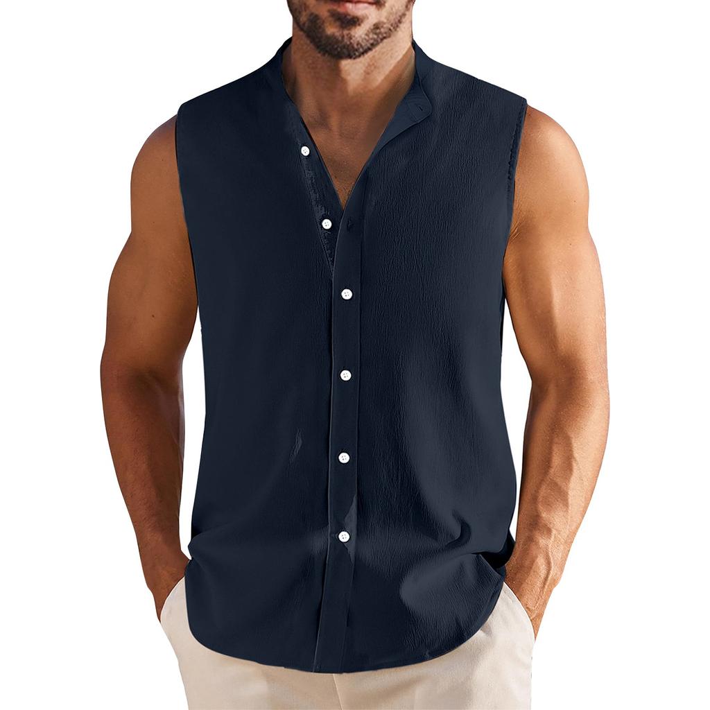 Мужская летняя гавайская однотонная рубашка без рукавов на пуговицах — купить товар онлайн с бесплатной доставкой по всему миру!