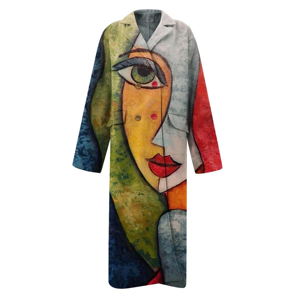 Женская мода для отдыха с длинными рукавами и лацканами, кардиган с принтом, пальто