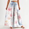 Женские широкие брюки с высокой талией, летние повседневные струящиеся брюки-палаццо, пляжные брюки с цветочным принтом и карманом