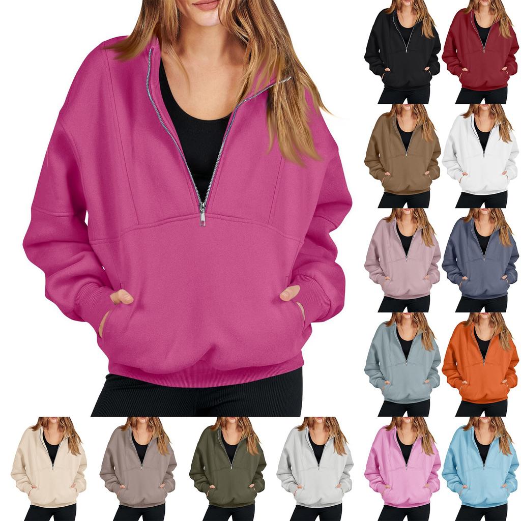 Женская модная однотонная повседневная толстовка с длинными рукавами и карманом на молнии — купить товар онлайн с бесплатной доставкой по всему миру!