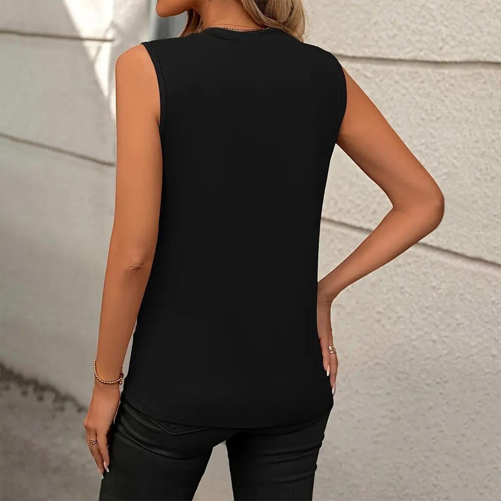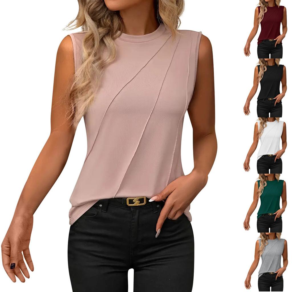Женская модная повседневная сексуальная однотонная свободная майка без рукавов с круглым вырезом