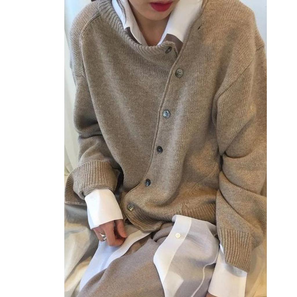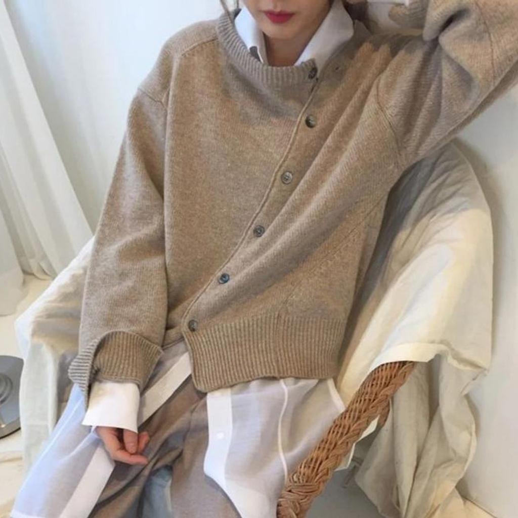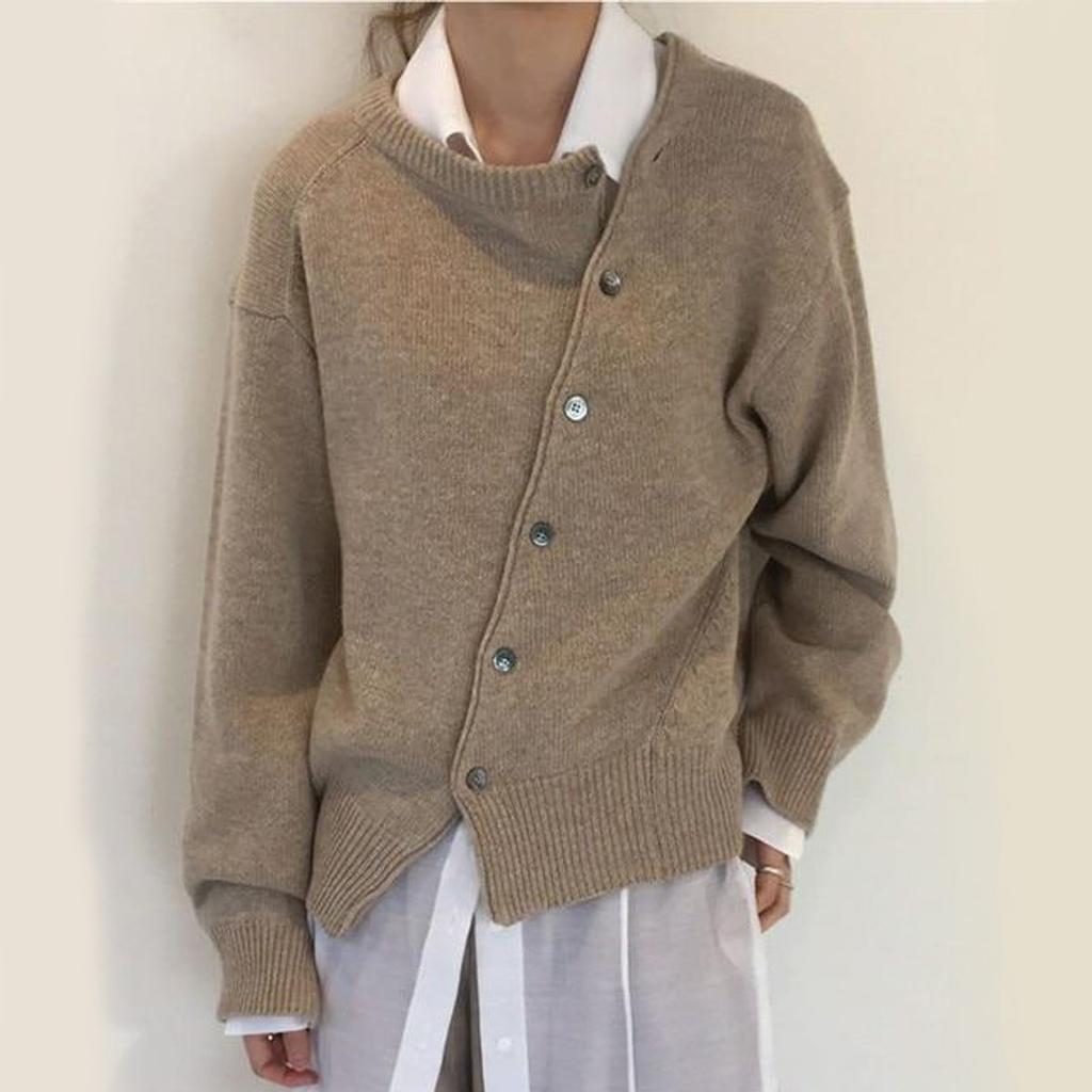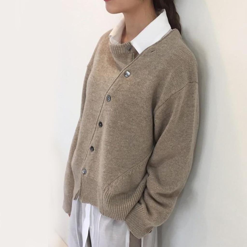 Женский свитер нестандартной формы на пуговицах, кардиган, вязаная куртка с круглым вырезом