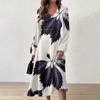 Женское осенне-зимнее повседневное модное длинное платье с v-образным вырезом и длинным рукавом с принтом дефолиации