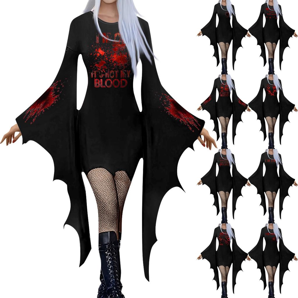 Женская мода готический панк летучая мышь рукава Хэллоуин принт нестандартное вечернее платье