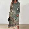 Женское осенне-зимнее повседневное модное платье с круглым вырезом и длинным рукавом с принтом