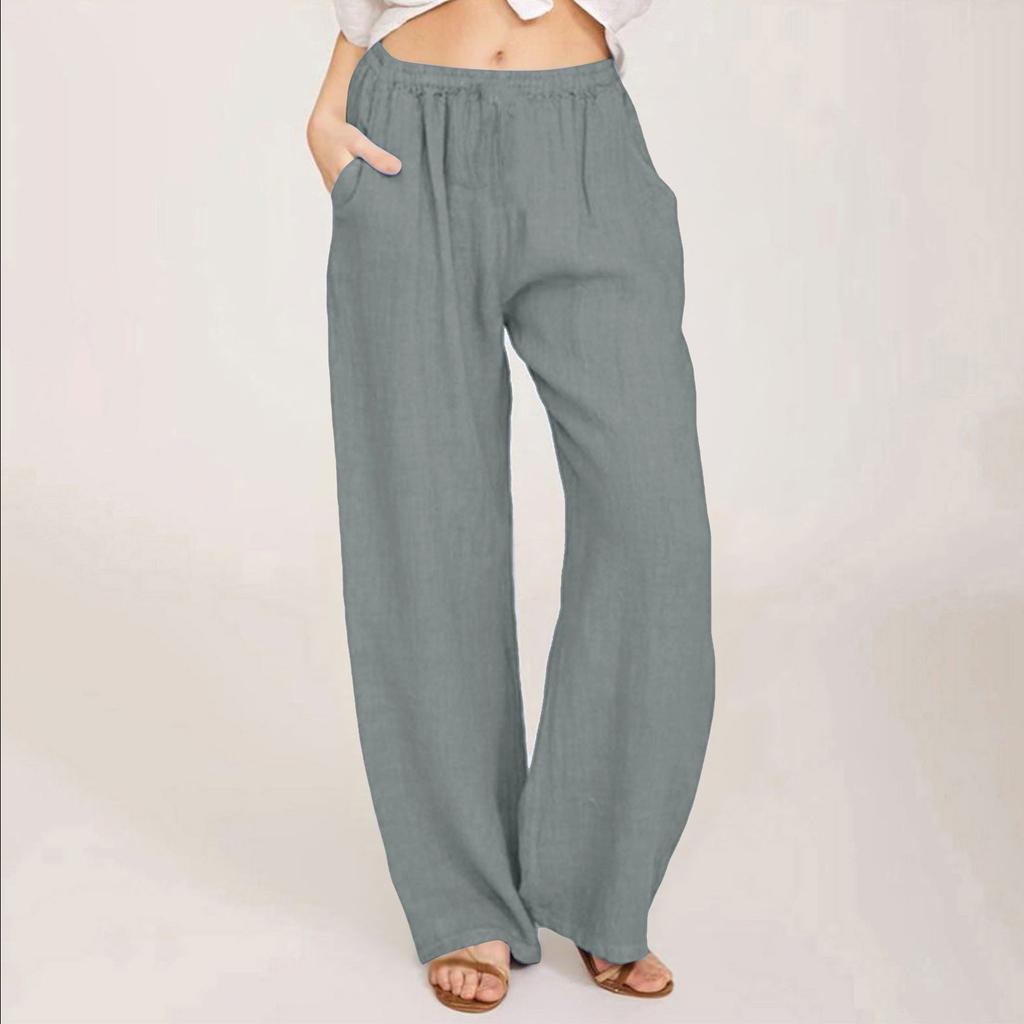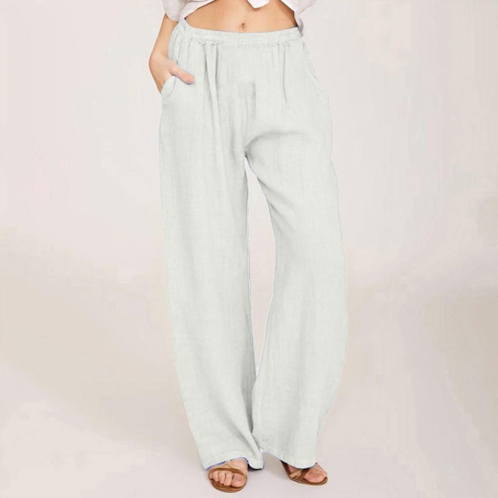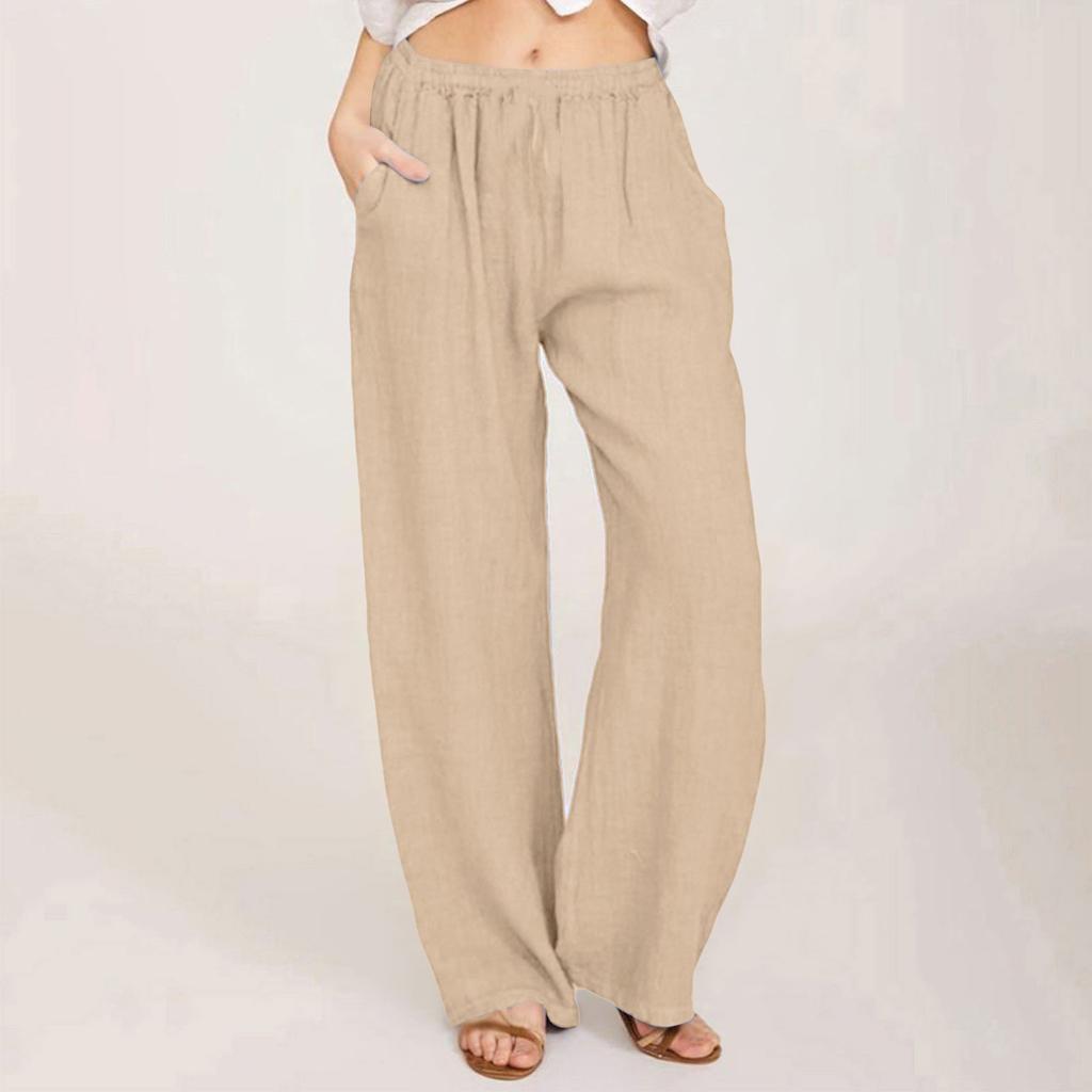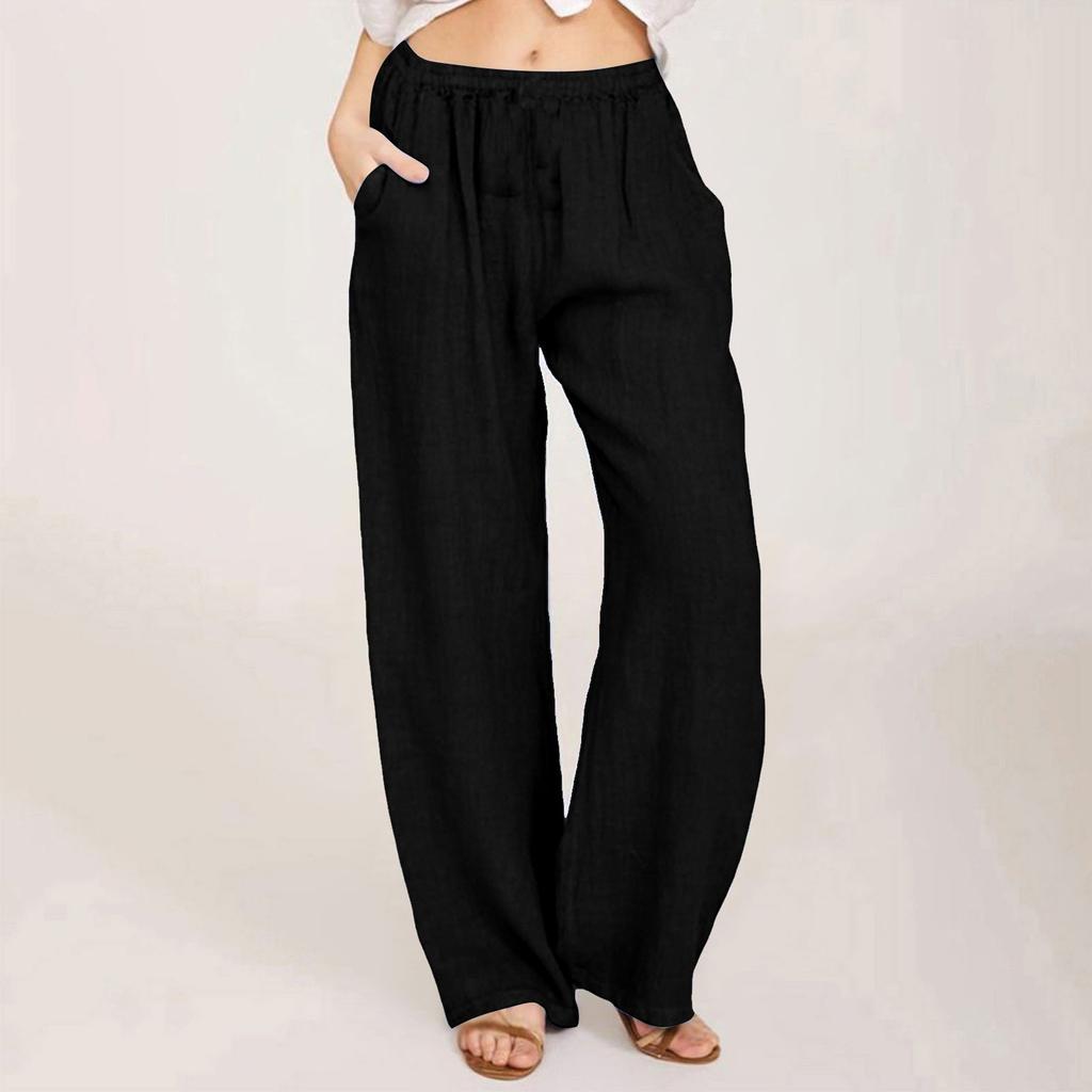 Женские повседневные прямые брюки, однотонные повседневные длинные брюки с карманами