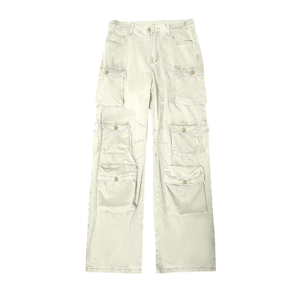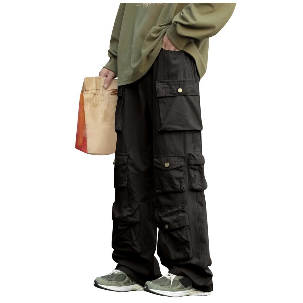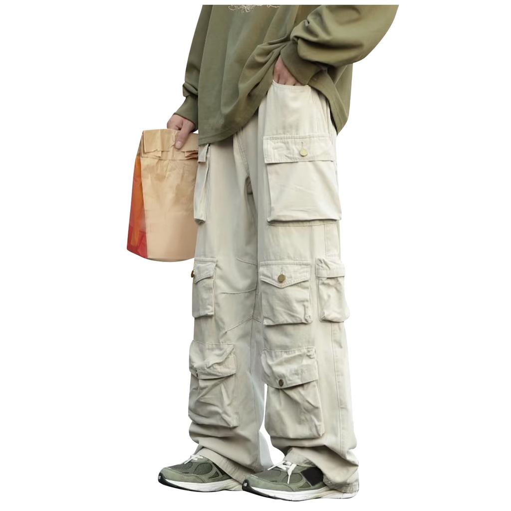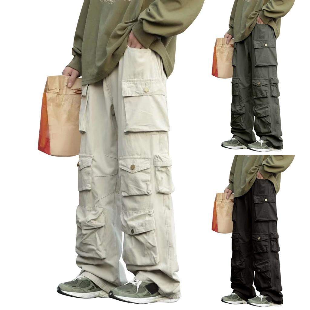 Осенне-зимние мужские однотонные свободные прямые брюки-трубы с несколькими карманами для рабочих брюк