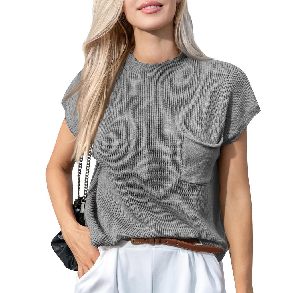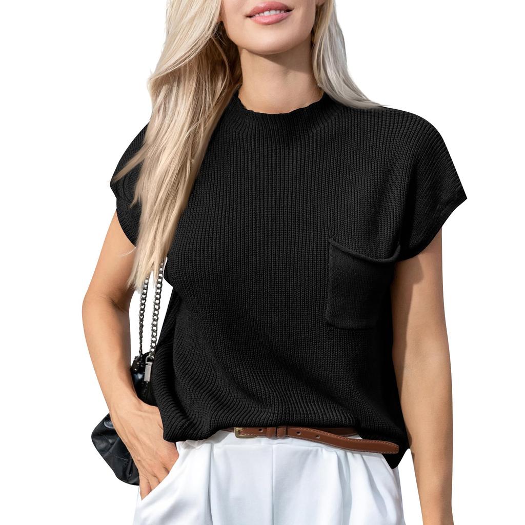 Женский повседневный модный сексуальный однотонный удобный и дышащий пуловер с круглым вырезом, вязаный топ с карманами