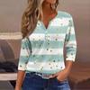 Жен. Футболка Футболка С принтом Пуговицы Рукав 3/4Ежедневно Выходные Мода Классический Топ с v-образным вырезом Обычный