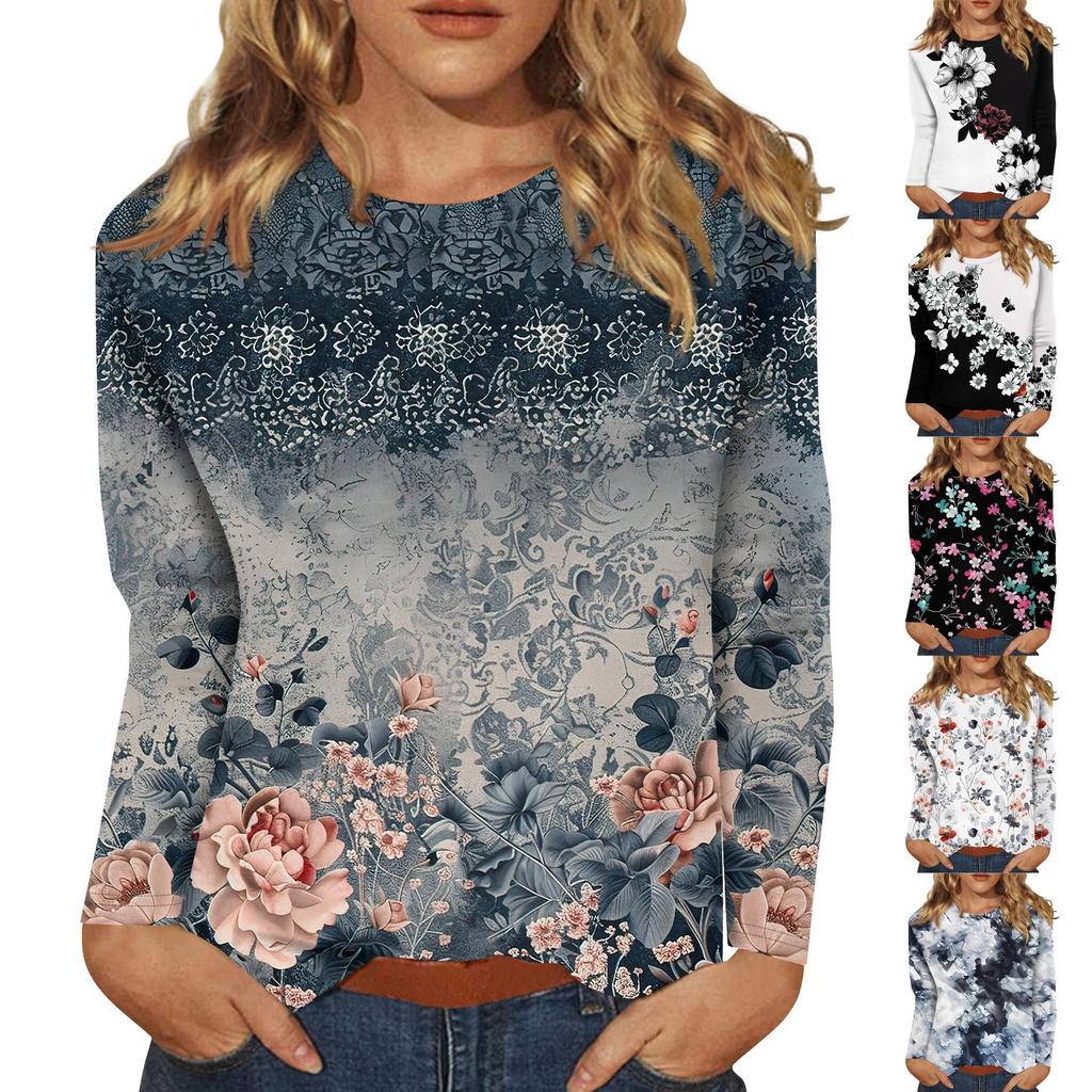 Женский модный повседневный пуловер с круглым вырезом и длинным рукавом с цветочным принтом — купить товар онлайн с бесплатной доставкой по всему миру!