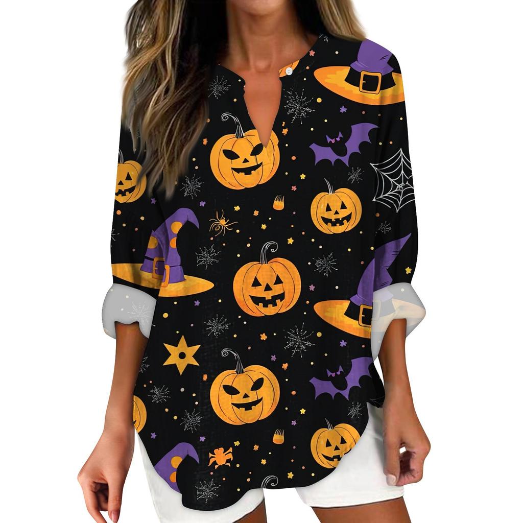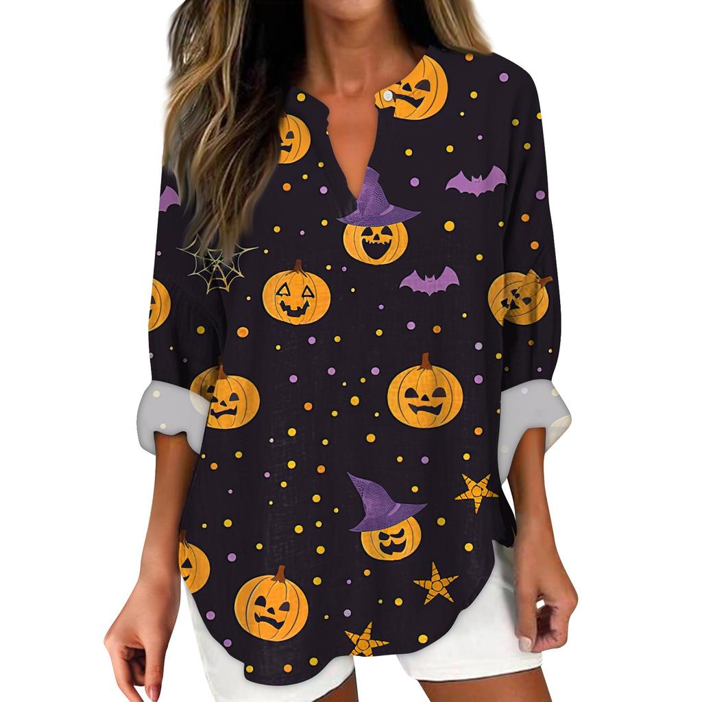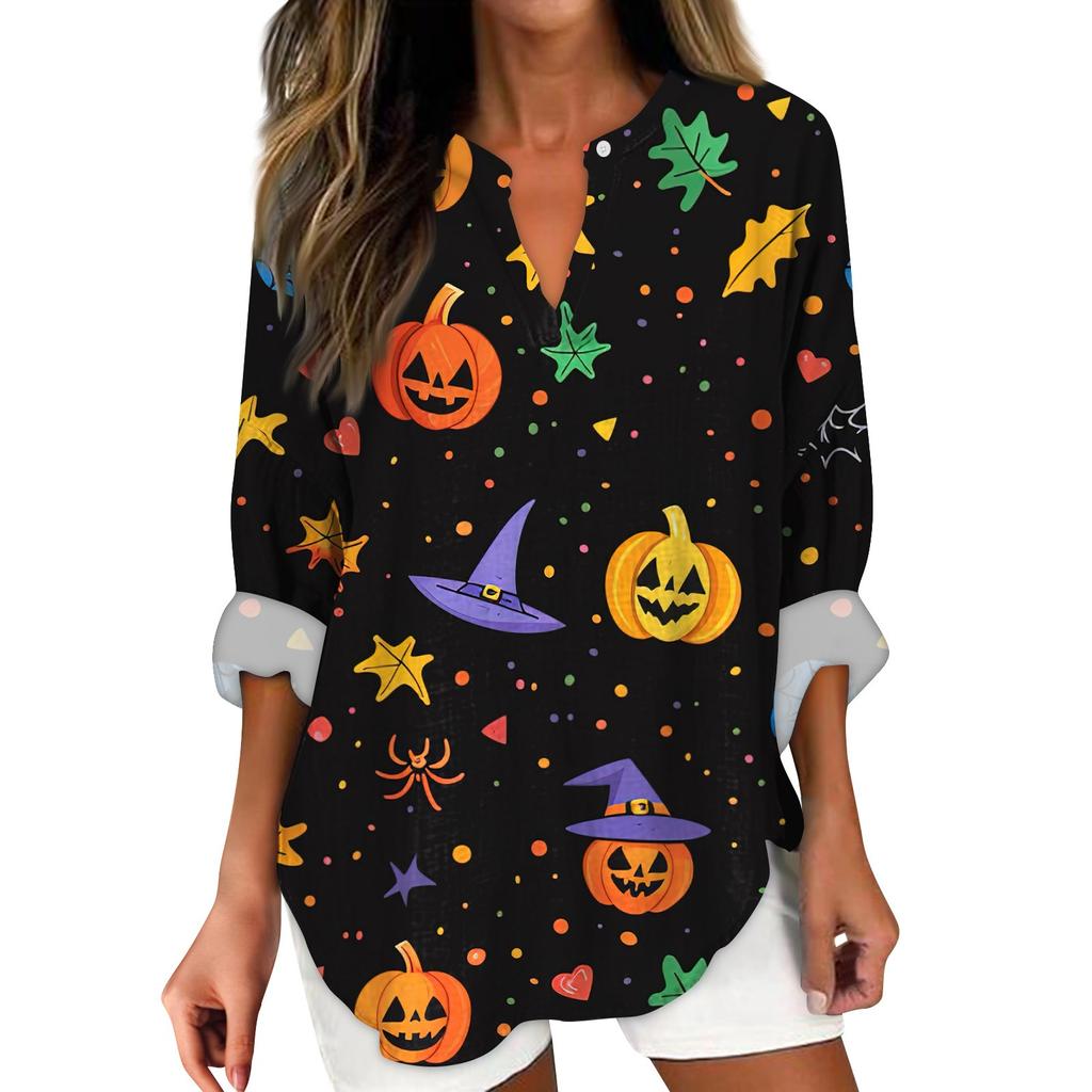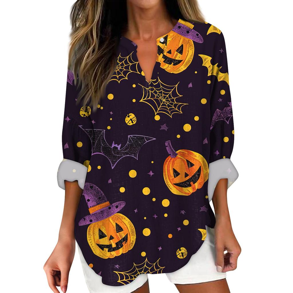 Женские модные повседневные женские топы с v-образным вырезом и заниженными плечами и принтом на Хэллоуин