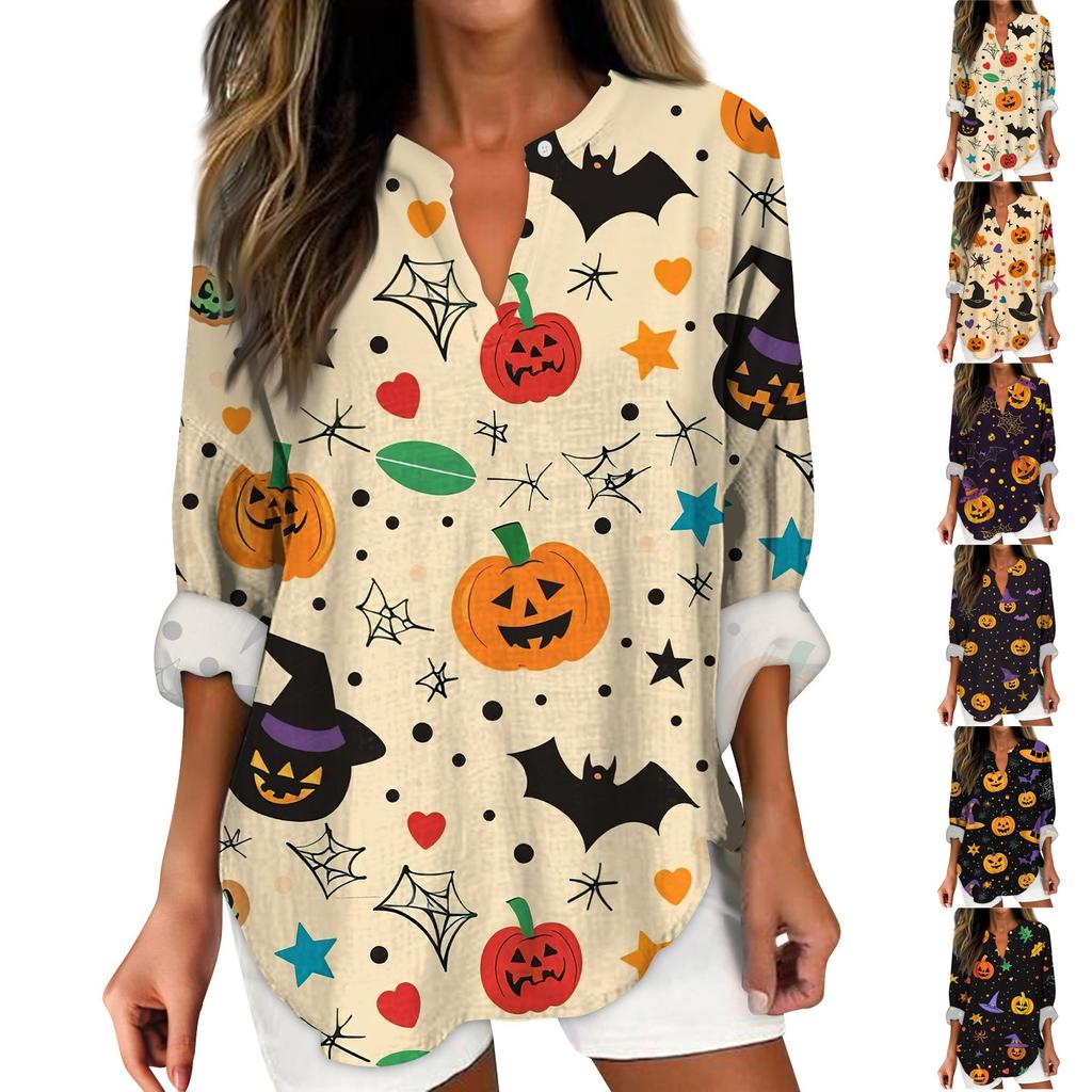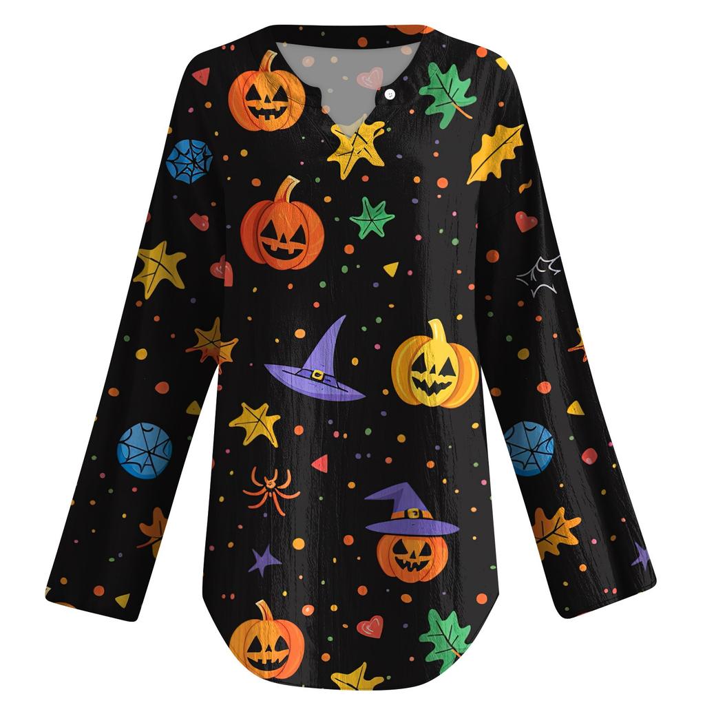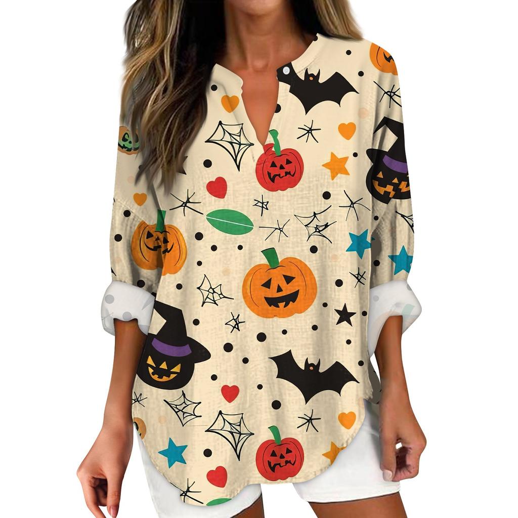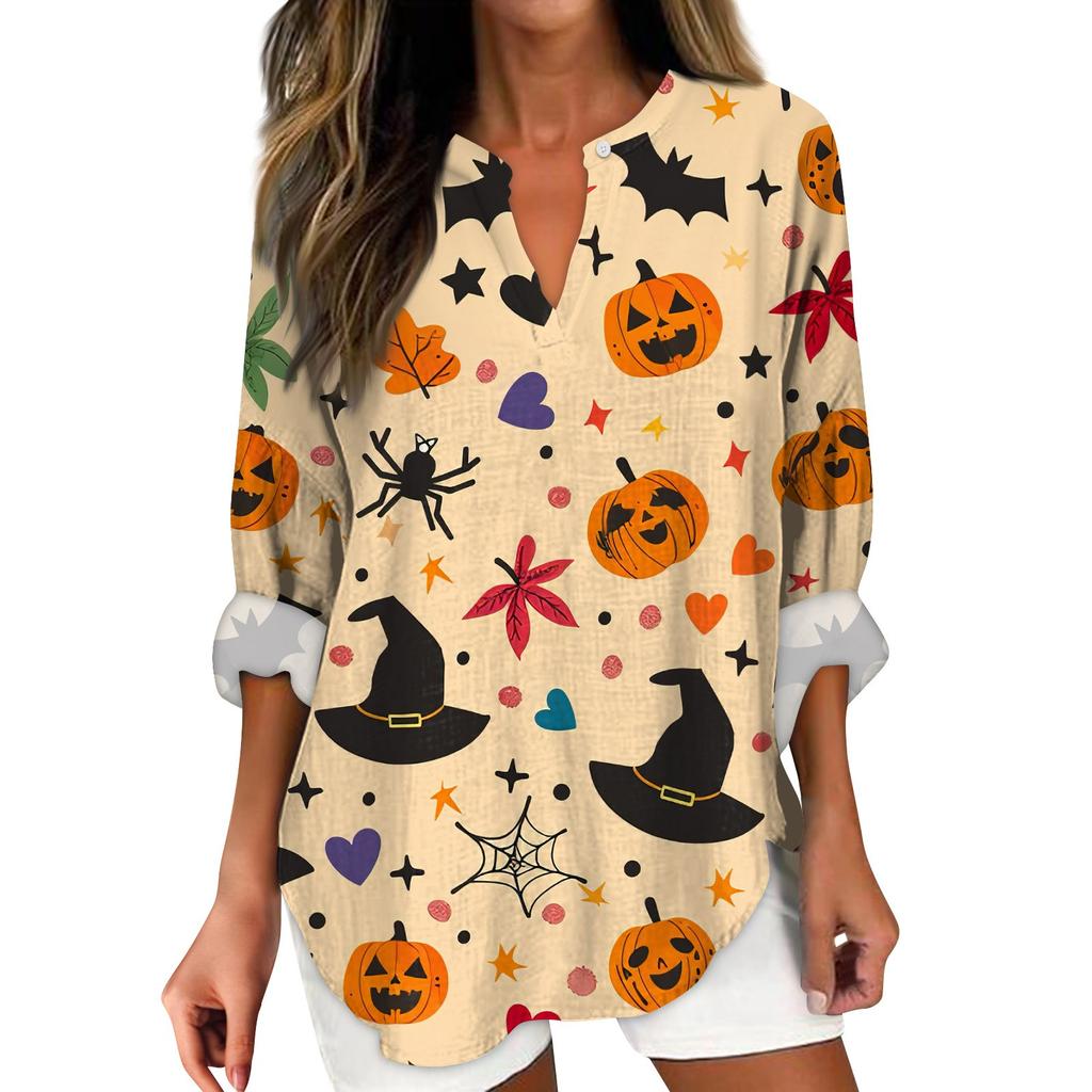 Женские модные повседневные женские топы с v-образным вырезом и заниженными плечами и принтом на Хэллоуин
