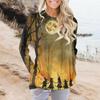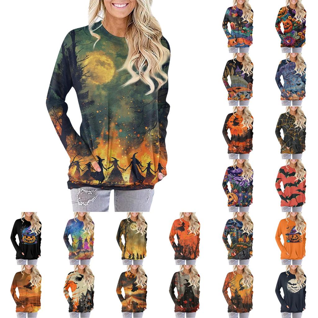Женская модная повседневная футболка с круглым вырезом и принтом, длинными рукавами и карманами — купить товар онлайн с бесплатной доставкой по всему миру!
