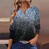 Женская футболка с длинным рукавом на пуговицах, повседневная, выходного дня, модная, базовая, с V-образным вырезом, обычная, с карманом