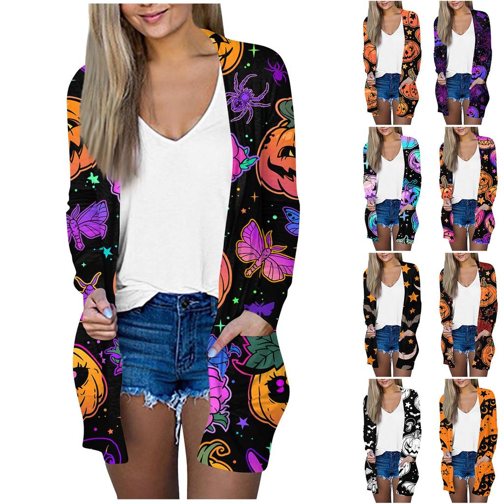 Женская мода Свободные повседневные карманные куртки-кардиганы на Хэллоуин с длинными рукавами Топы