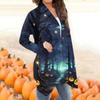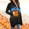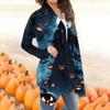 Женская мода, повседневный кардиган с принтом на Хэллоуин, средней длины, куртка, пальто