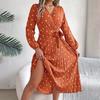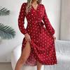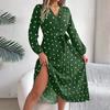 Женское модное элегантное плиссированное длинное платье в горошек с крестом и V-образным вырезом с длинными рукавами и галстуком