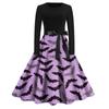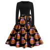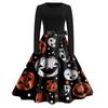 Женское платье с расклешенным принтом на Хэллоуин с длинным рукавом и круглым вырезом, вечерние повседневные платья