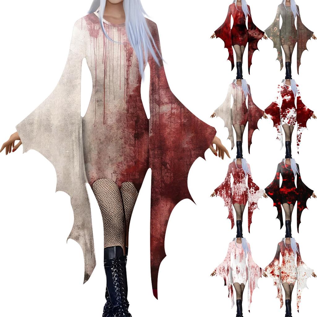 Женская мода готический панк летучая мышь рукава Хэллоуин принт нестандартное вечернее платье — купить товар онлайн с бесплатной доставкой по всему миру!
