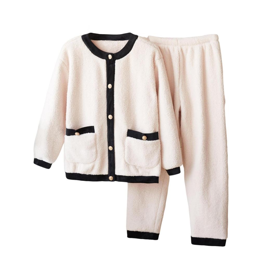 Женский фланелевый кардиган с длинными рукавами и V-образным вырезом, толстый теплый комплект домашней одежды для девочек