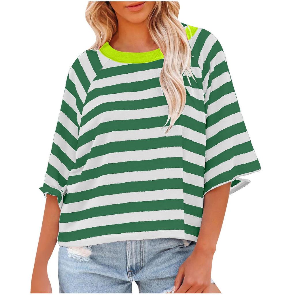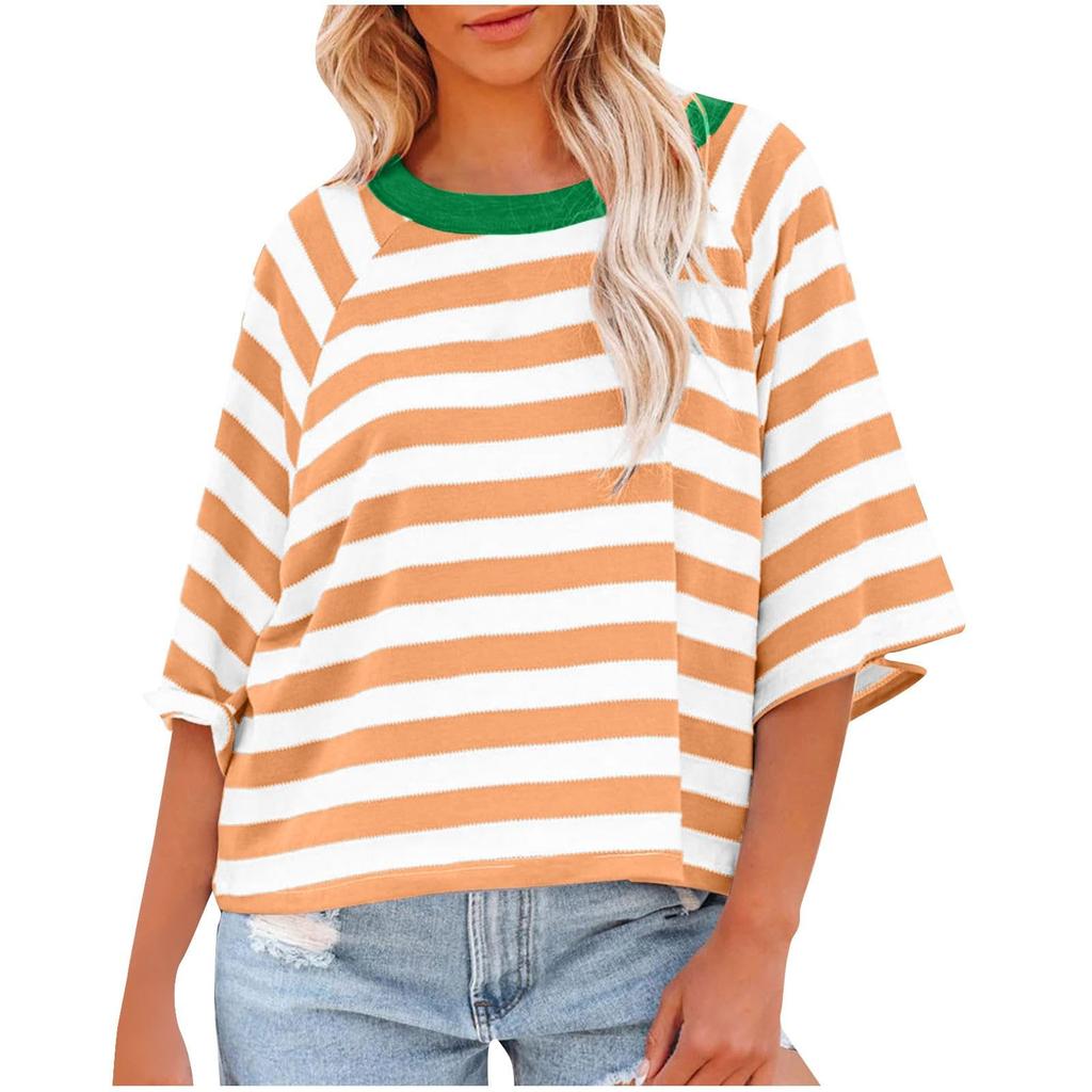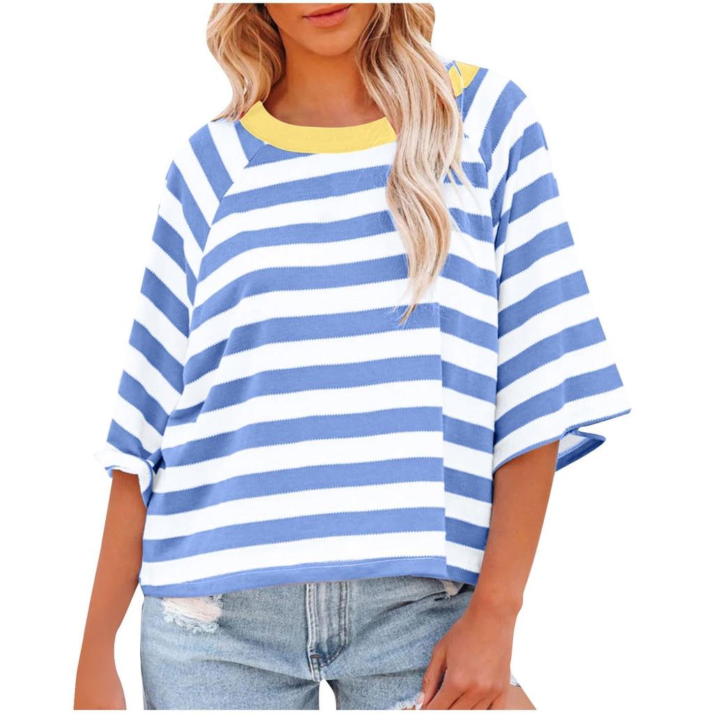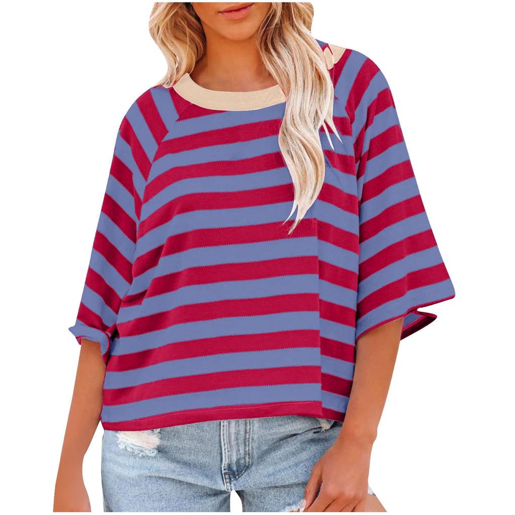 Топы для женщин, полосатые модные футболки для женщин, свободная базовая футболка с цветными блоками