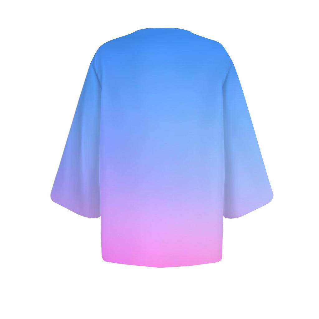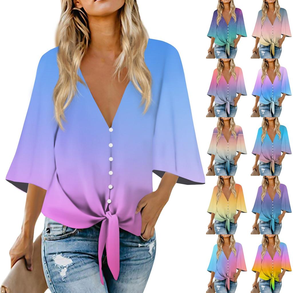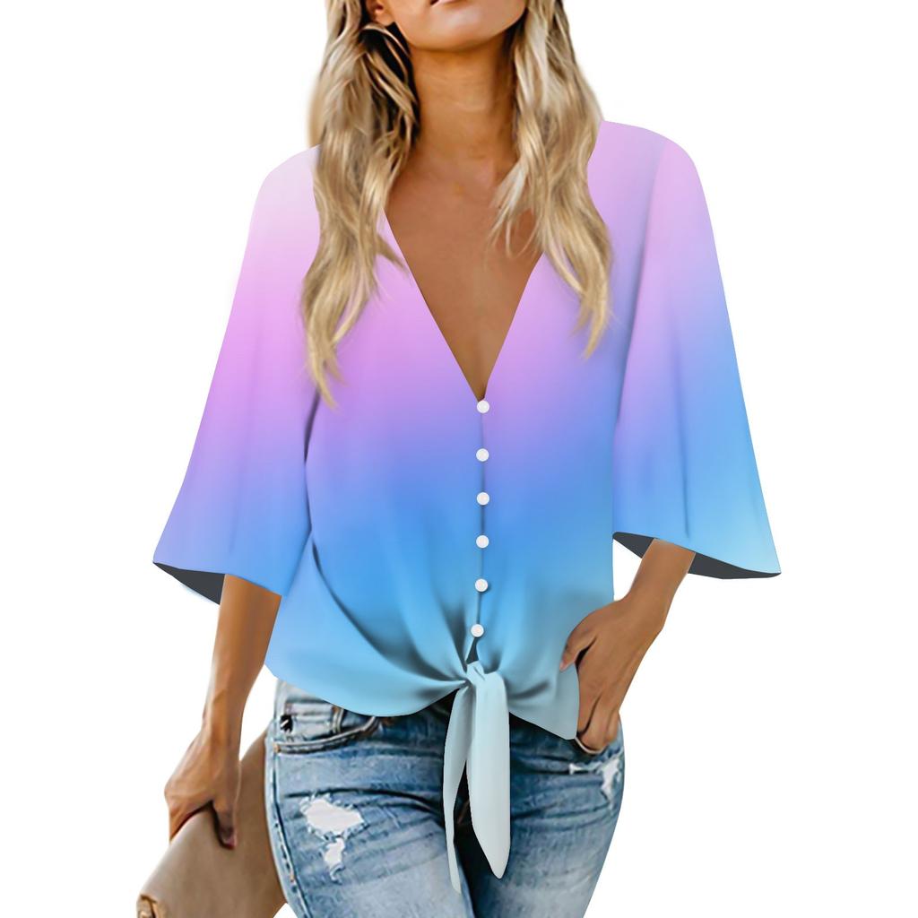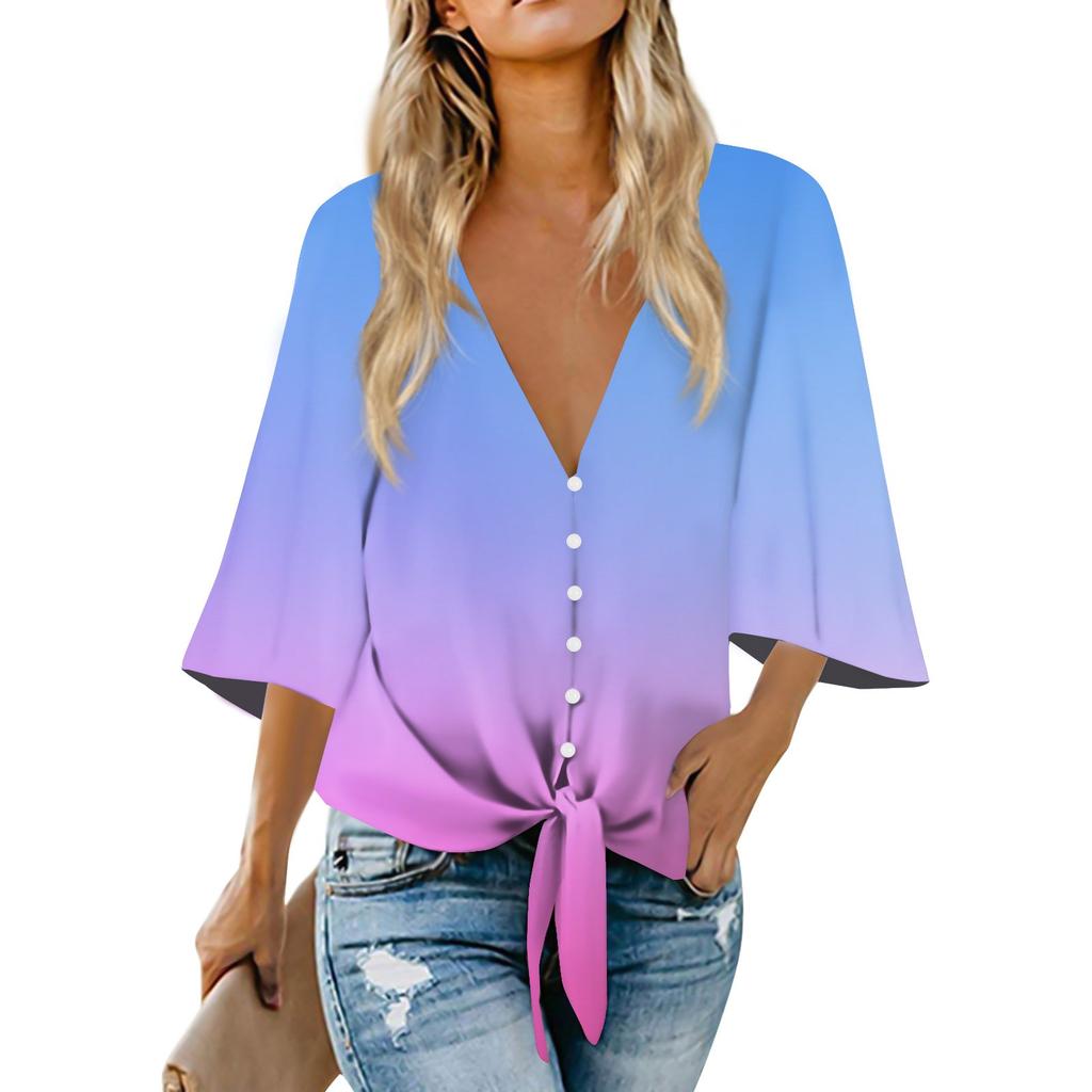 Женский модный повседневный топ с v-образным вырезом и градиентным принтом, рукавами 3/4 и завязками на пуговицах