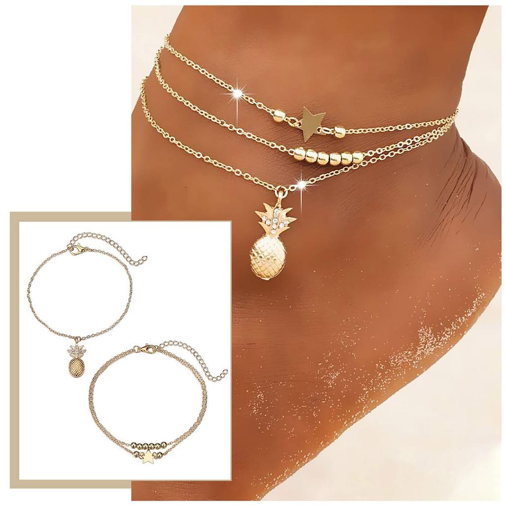 Универсальная пятиконечная звезда, рисовая бусина, ананас, трехслойная цепочка для ног