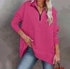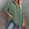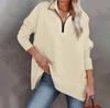 Женская повседневная спортивная рубашка оверсайз на половинной молнии, сплошной цвет с длинными рукавами и карманным пуловером, топ