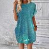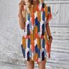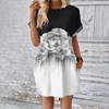 Женское модное летнее свободное платье-футболка средней длины с принтом и короткими рукавами