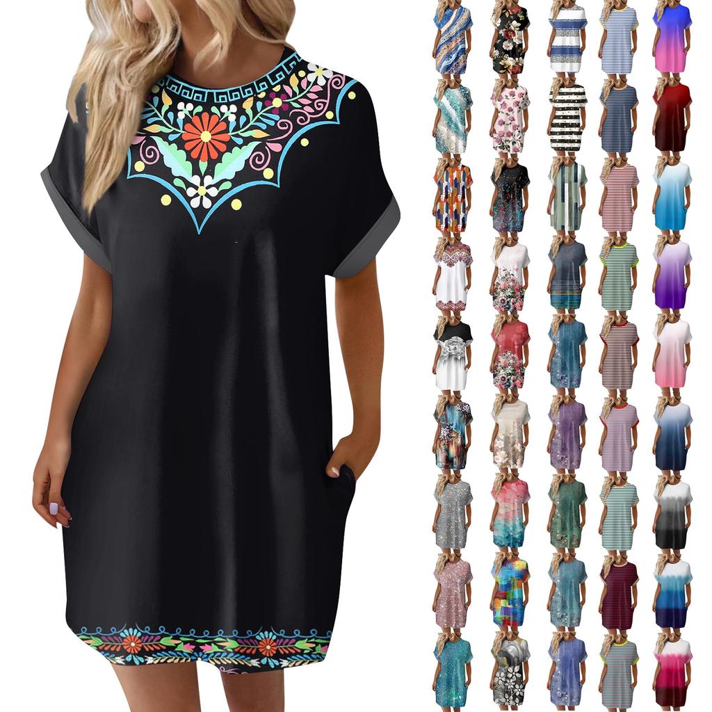 Женское модное летнее свободное платье-футболка средней длины с принтом и короткими рукавами — купить товар онлайн с бесплатной доставкой до всему миру!